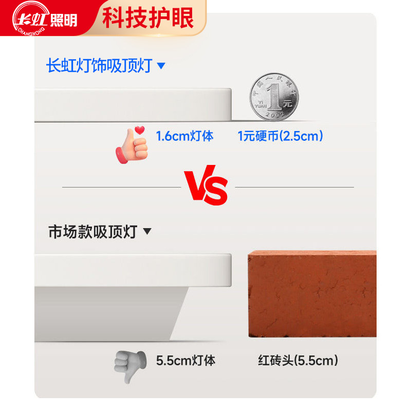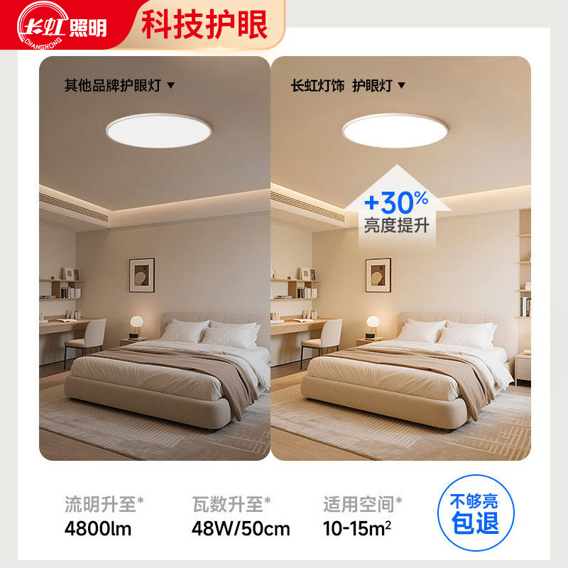 长虹「空间魔法师」超薄卧室吸顶灯无缝全光谱护眼圆形书房间灯具