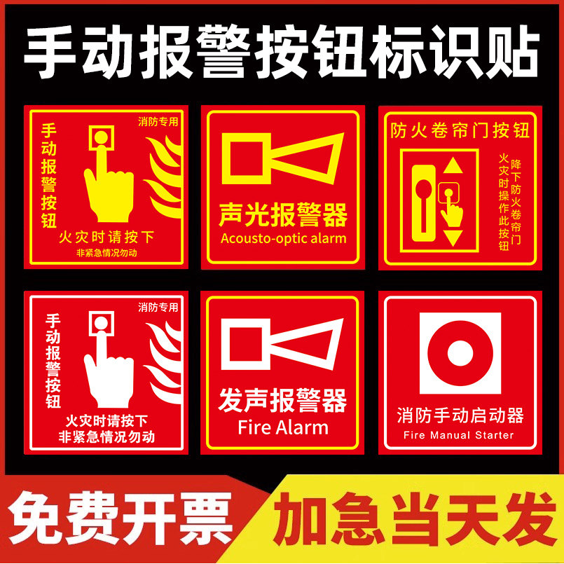手动报警按钮标识贴亚克力消防手动报按钮标贴声光报警器防火卷帘门消防标识标牌亚克力消防警示标志牌定制