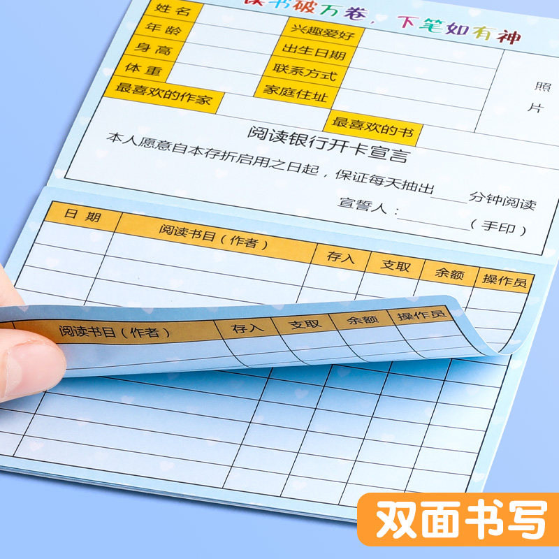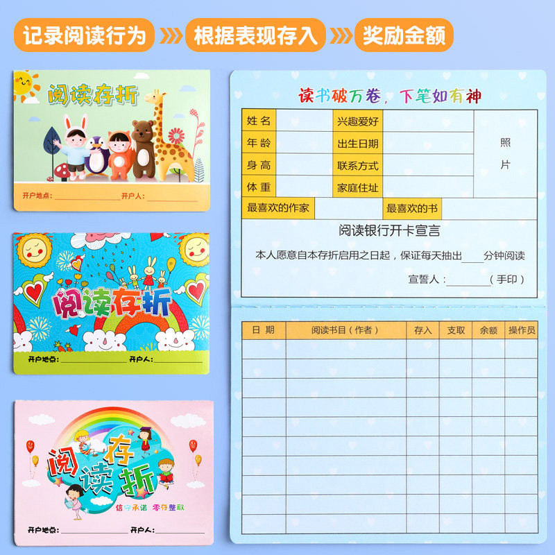 儿童阅读存折本记录卡读书心愿存折学习幼儿园成长小学生用一年级二三四年五年级积分奖励亲子登记册集章打卡