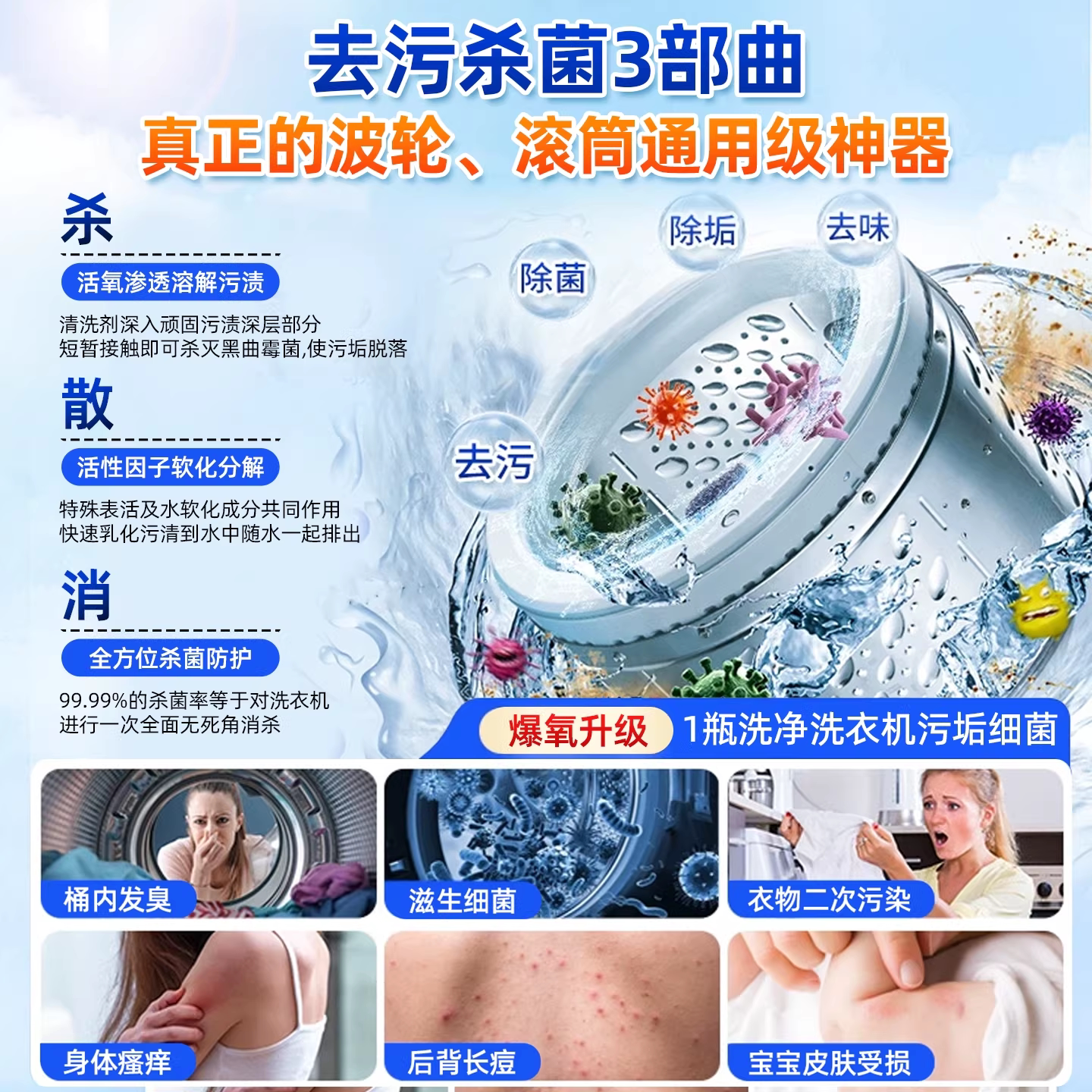 洗衣机清洁剂专用爆氧粉强力除垢杀菌消毒滚筒波轮清洗槽污渍神器