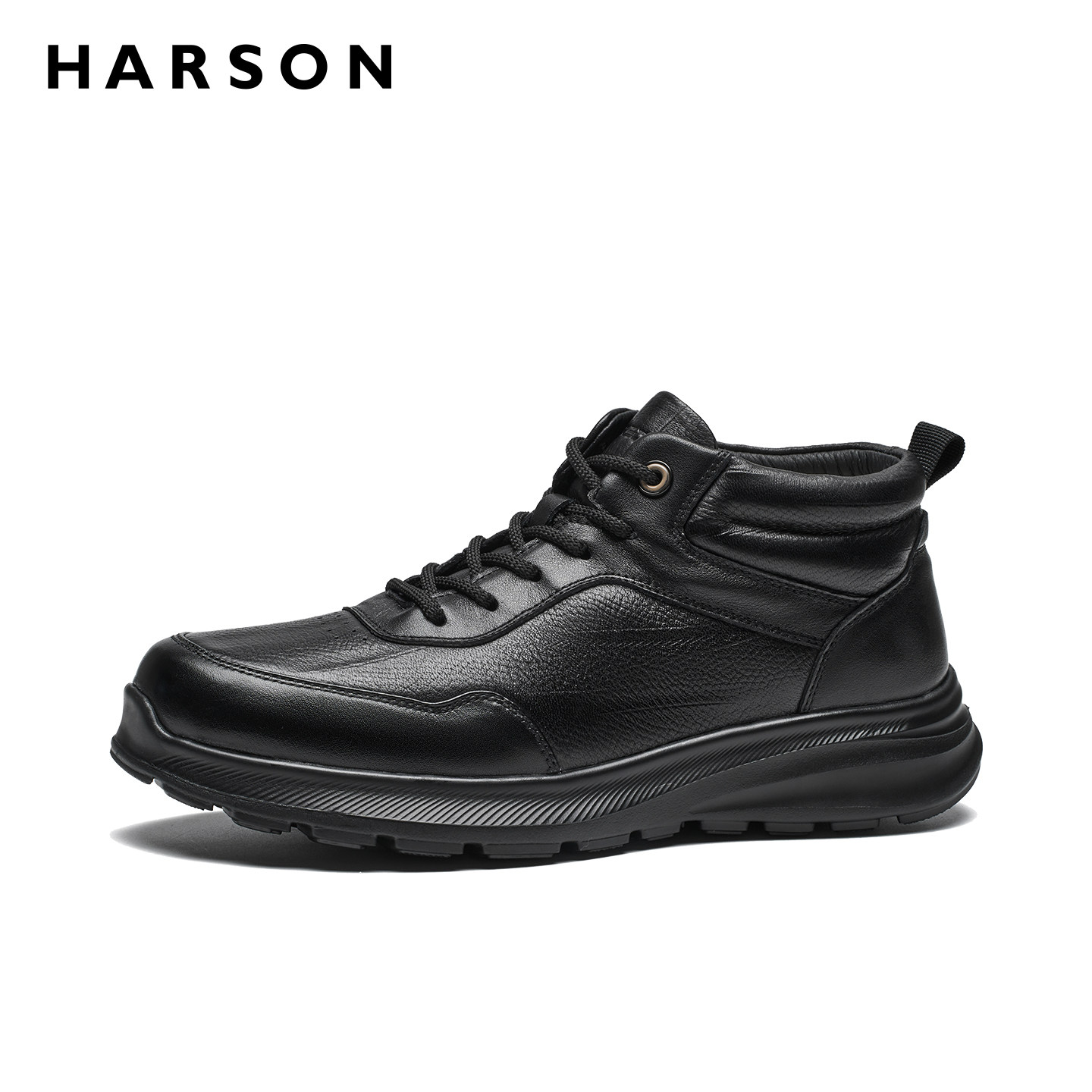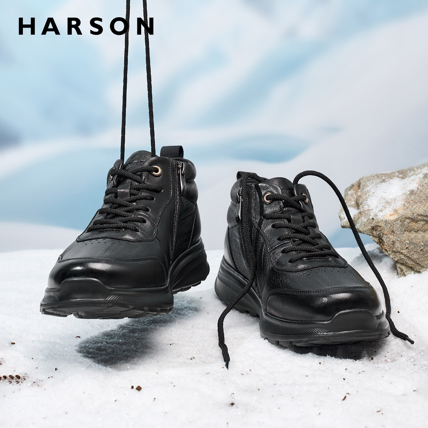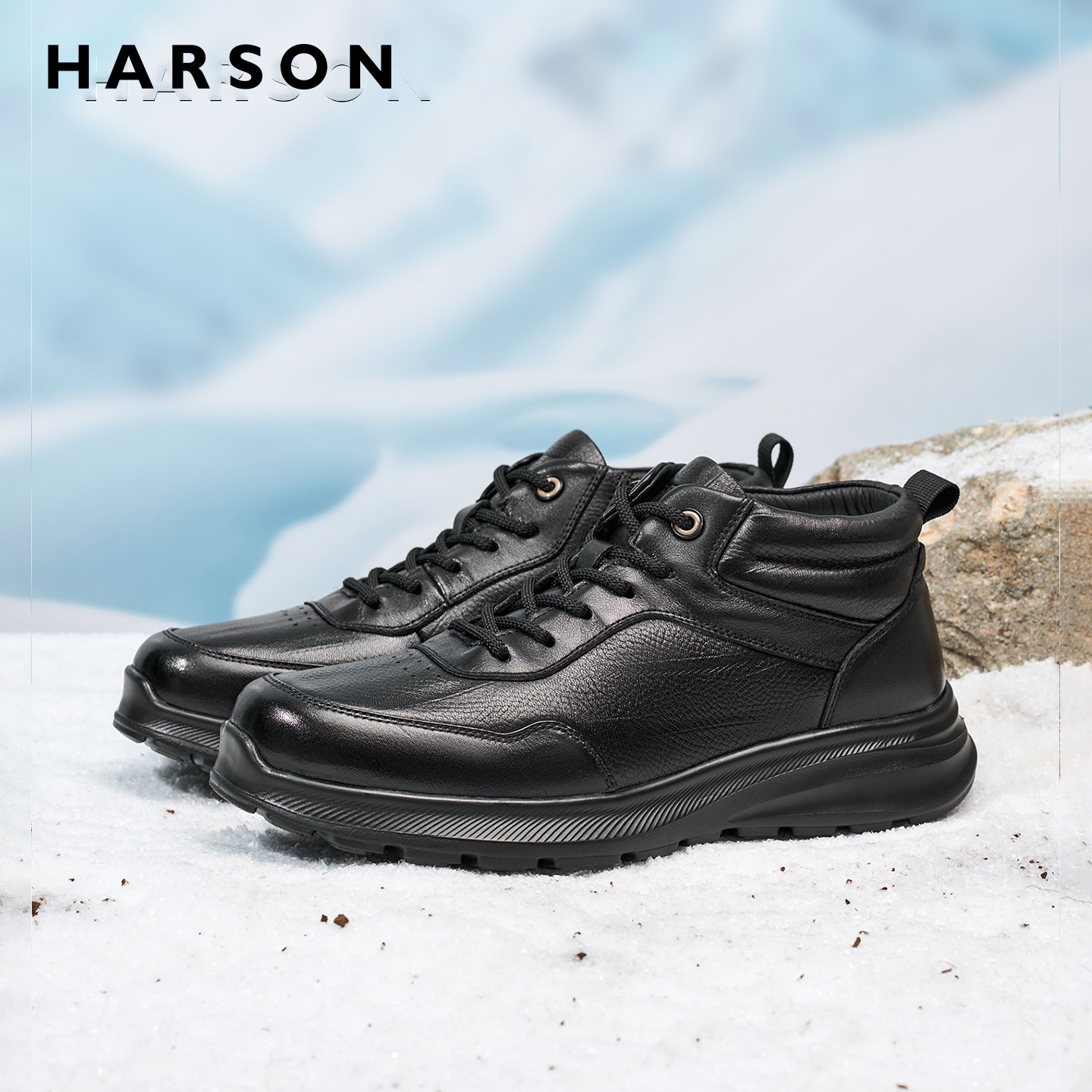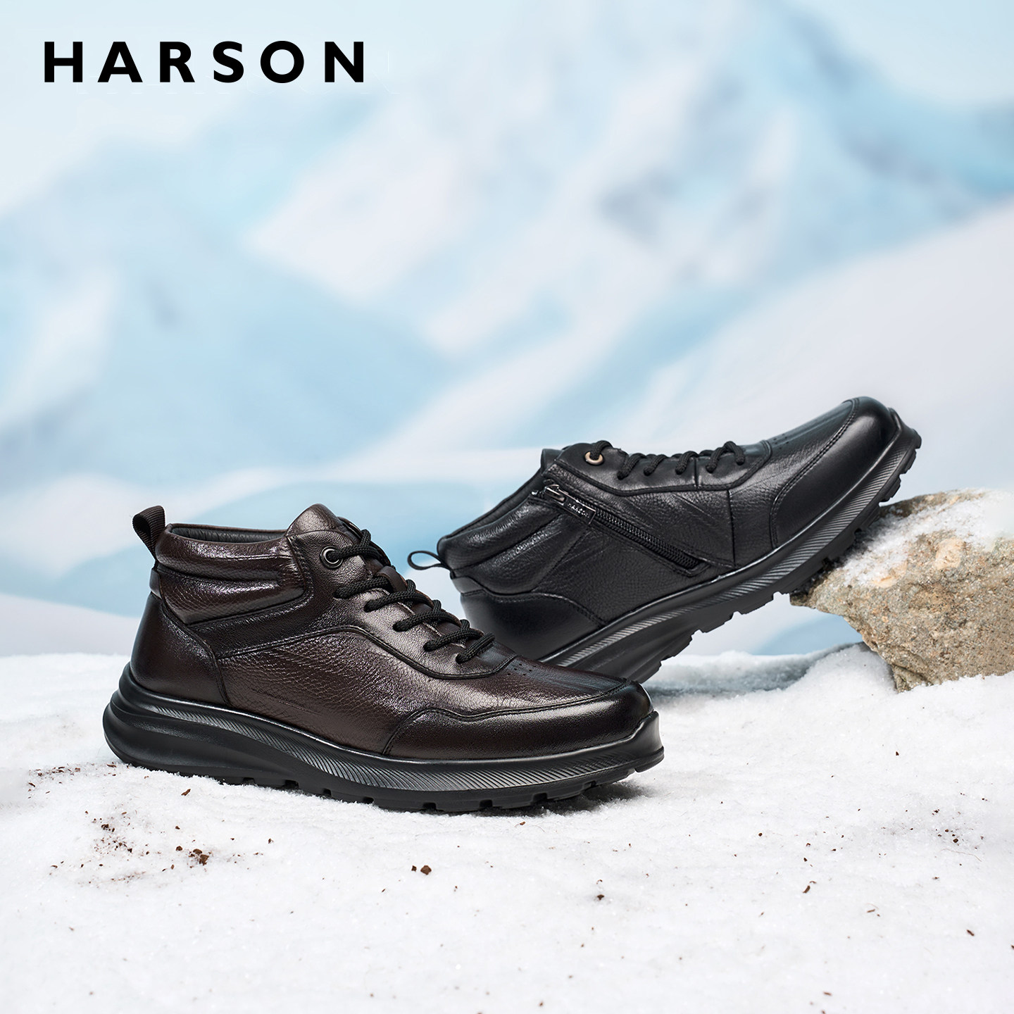 哈森冬季男鞋真皮羊毛爸爸棉靴防滑保暖加绒短靴商务休闲男士皮鞋