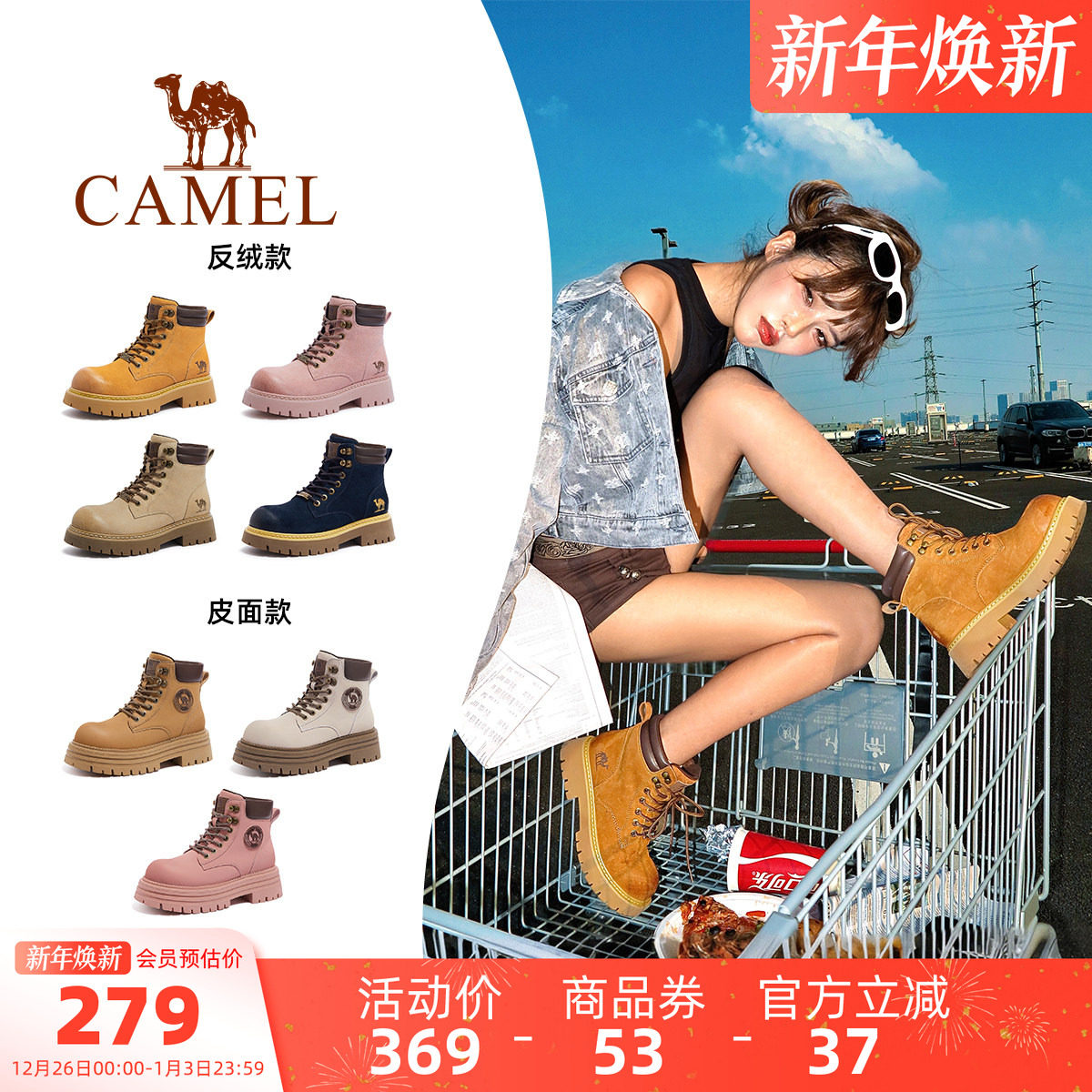 骆驼马丁靴女鞋2025秋季新款爆款大黄靴女英伦厚底户外工装短靴子