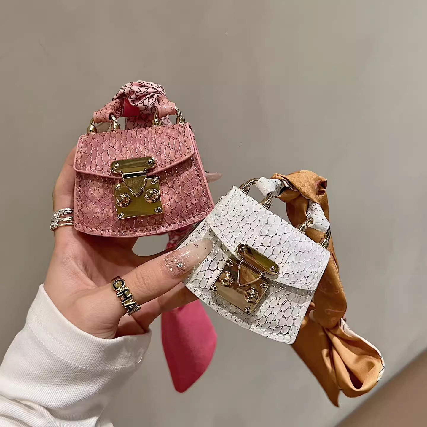 复古百搭丝巾迷你包适用苹果耳机包AirPodspro3保护套皮质高级感airpods2/3/4代软壳pro2保护壳时尚奢华挂件