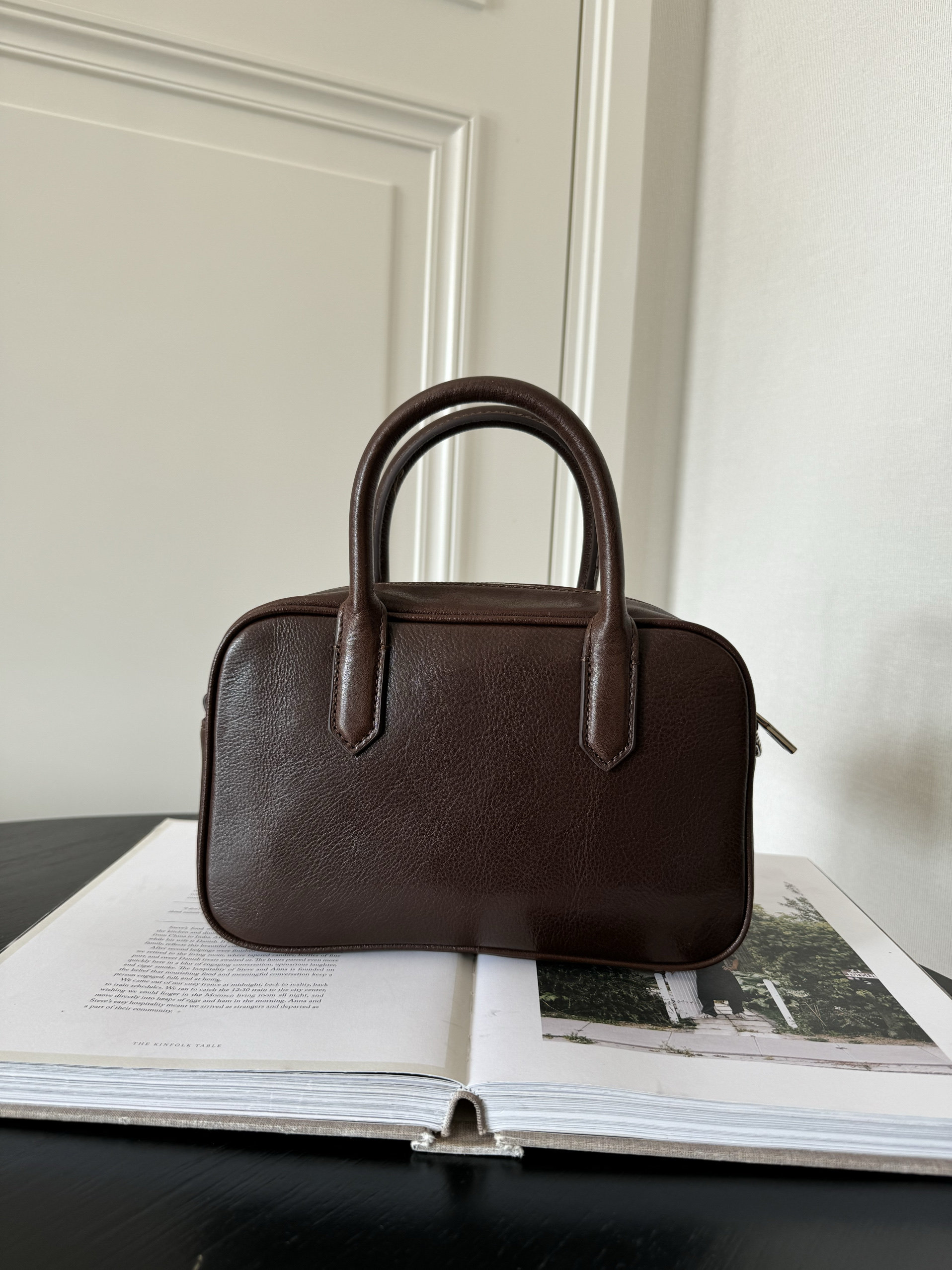 ZOEYLEE 进口植鞣牛皮宽宽 小保龄球包单肩斜挎手提包女包
