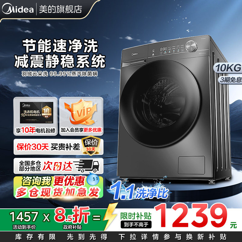 【以旧换新补贴】美的洗衣机10公斤滚筒洗脱一体除菌螨1.1洗净36T