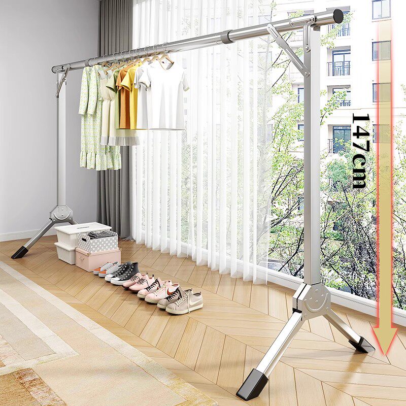 落地折叠家用卧室阳台晒衣架挂架凉衣杆伸缩钢管晾衣晾晒结实实用