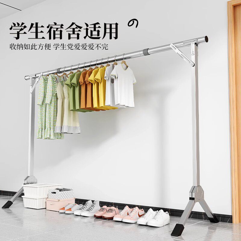 落地晾衣架折叠不锈钢家用阳台室内室外伸缩凉衣杆室内晒被子神器