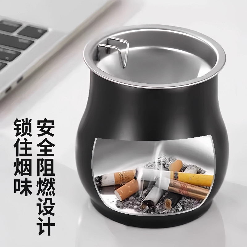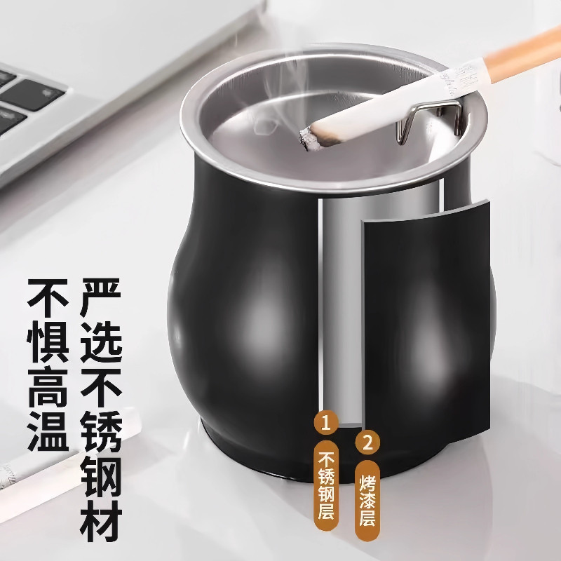 防飞灰烟灰缸不锈钢家用带盖高档漏斗办公室烟缸个性防风时尚烟盅