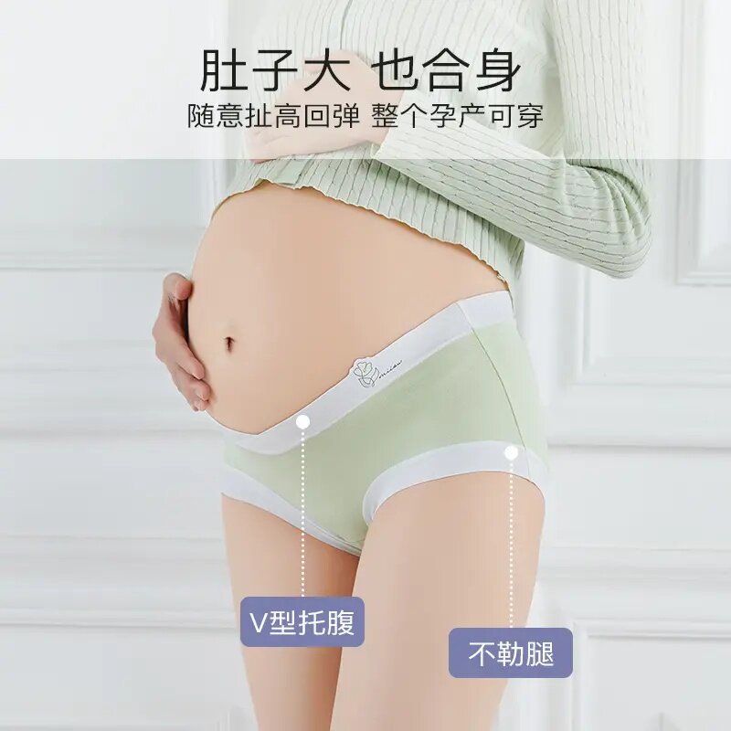 四季孕早中晚期产后专用棉V托腹亲肤舒适A类大码低腰内裤抑菌产妇