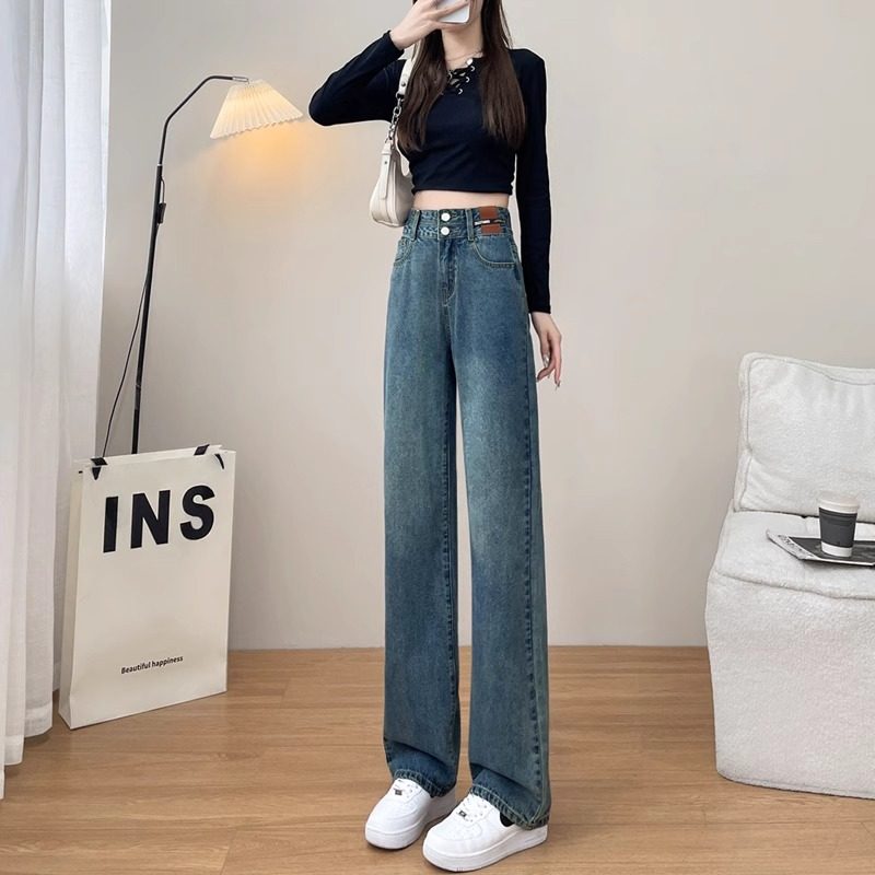 大码牛仔裤女2026年春秋新款复古高腰显瘦直筒百搭休闲窄版阔腿裤