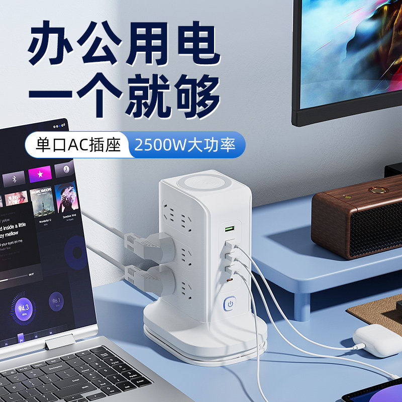 魔方立式插座插排usb快充带无线充耳机可充塔型多口带长线办公用