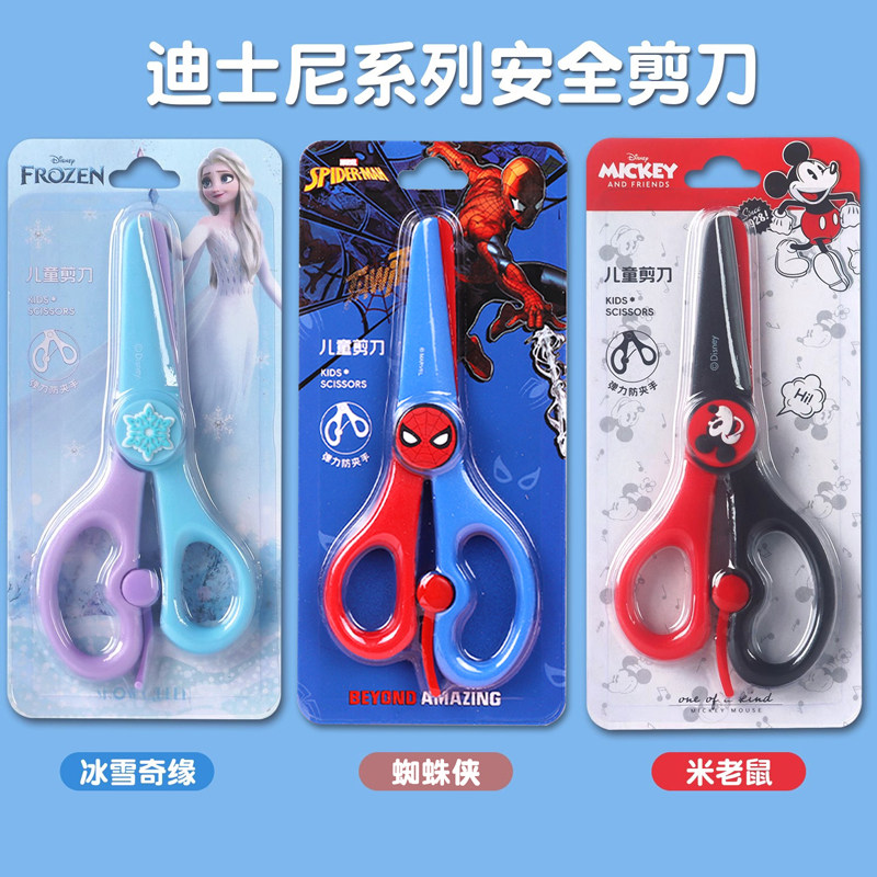 正版授权蜘蛛侠儿童防护型学生剪刀学生安全型草莓熊剪刀美术课美工专用圆头小剪子小孩便携式创意玩具塑料套