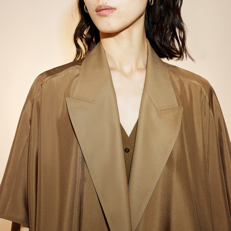 COCOBELLA高智感青果领老钱丝光缎面西装女苔藓绿通勤外套SI7019