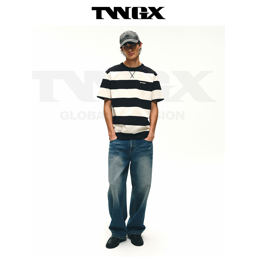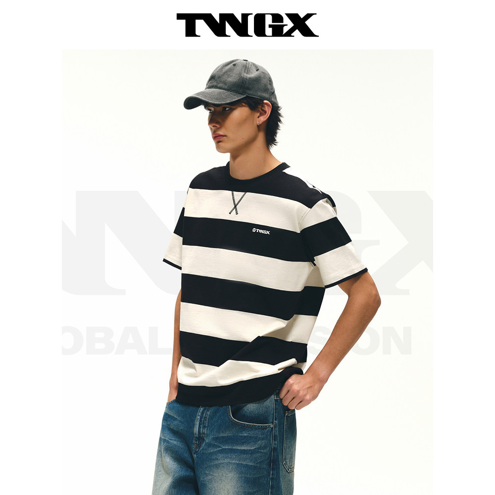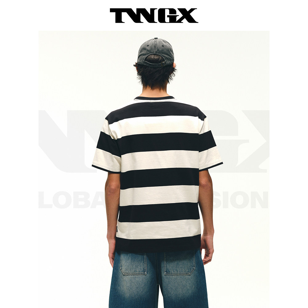 Teenie Weenie小熊男装美式运动风肌理感纯棉质感舒适短袖条纹T恤