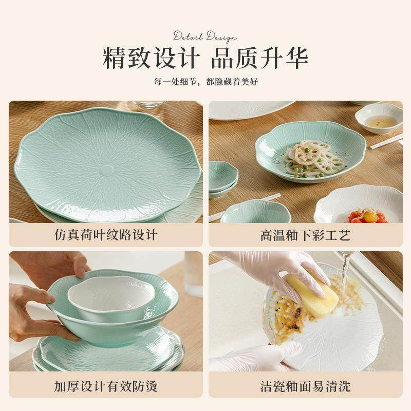 松发瓷器2025新款荷纹套装陶瓷碗具釉下彩家用餐具套装盘吃饭专用