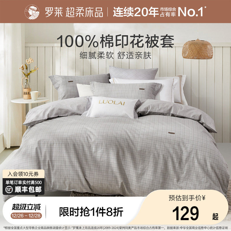 罗莱家纺纯棉全棉学生宿舍单人被套被罩单件100%棉拆件双人家用