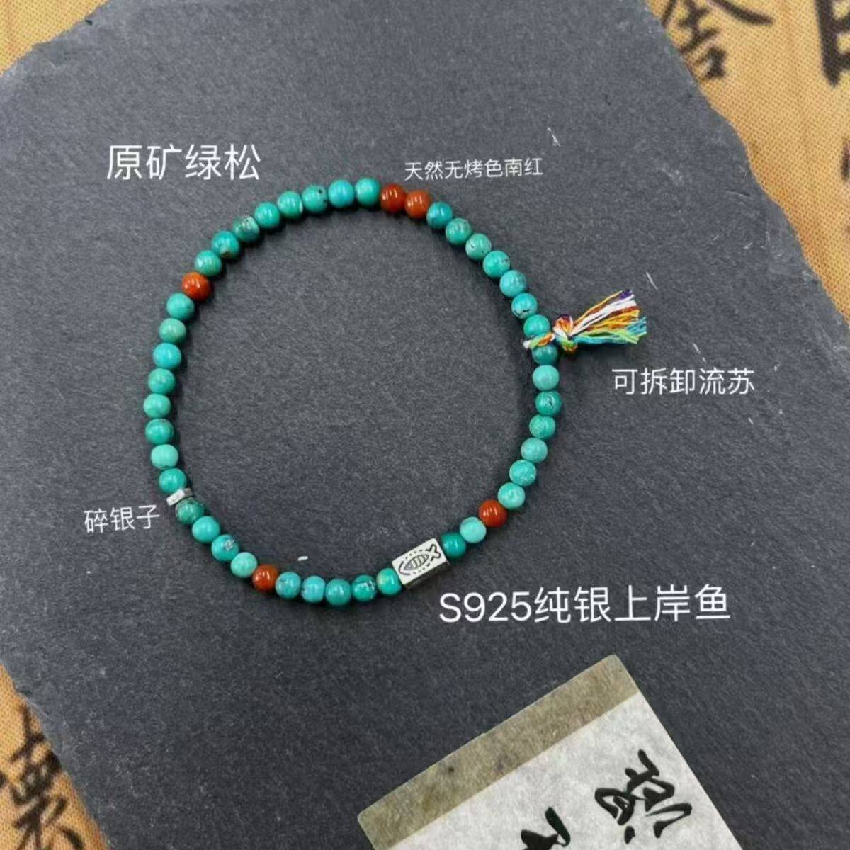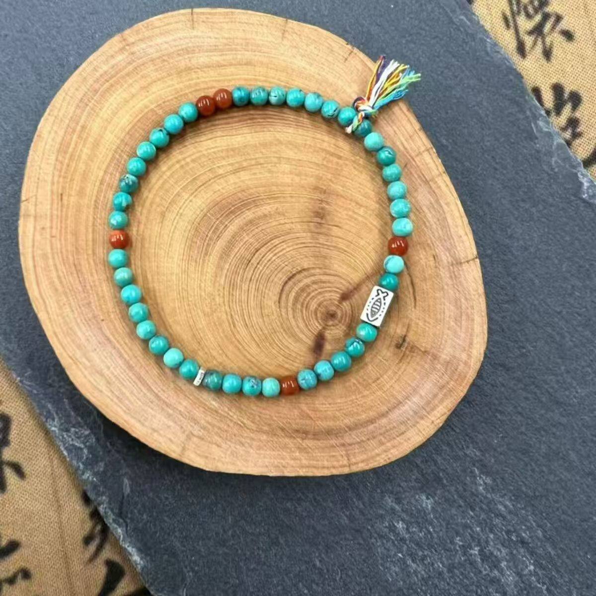 绿松石手串女款高瓷原创矿南红玛瑙蜜蜡盘文玩新中式男女手链真品