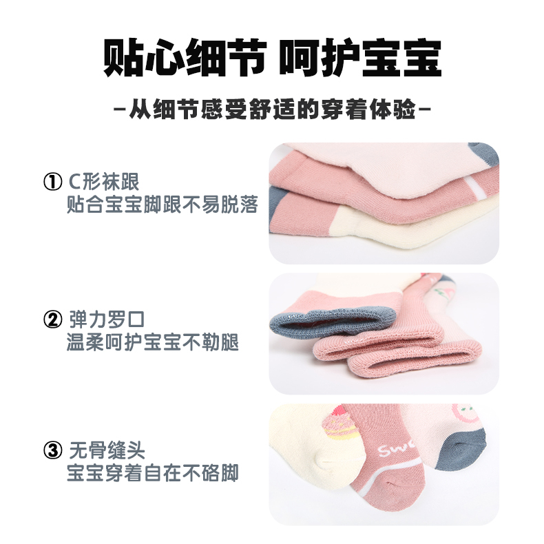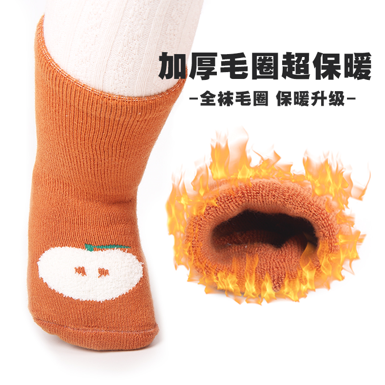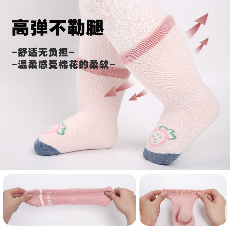 婧麒宝宝袜子秋冬棉袜加厚婴儿袜儿童中筒袜冬季0-3岁保暖毛圈袜