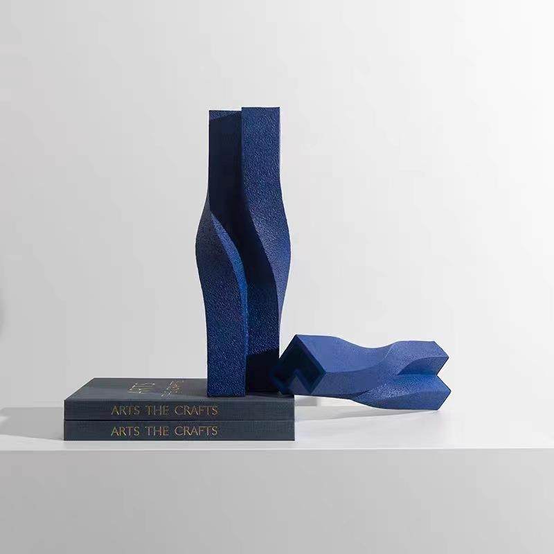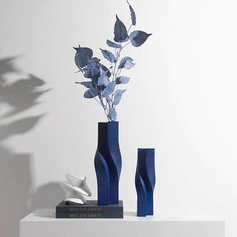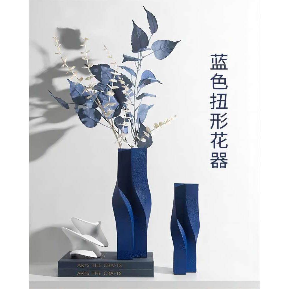 现代简约克莱茵蓝色扭曲花瓶客厅摆件样板间餐厅家居艺术软装饰品