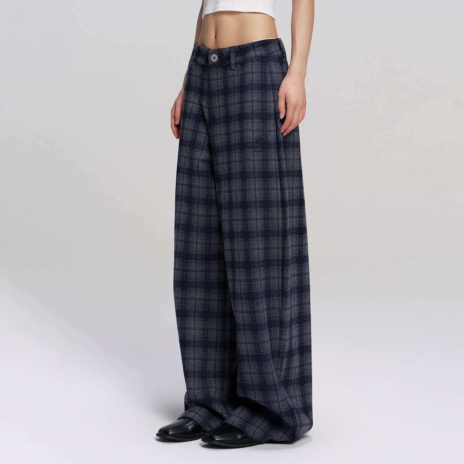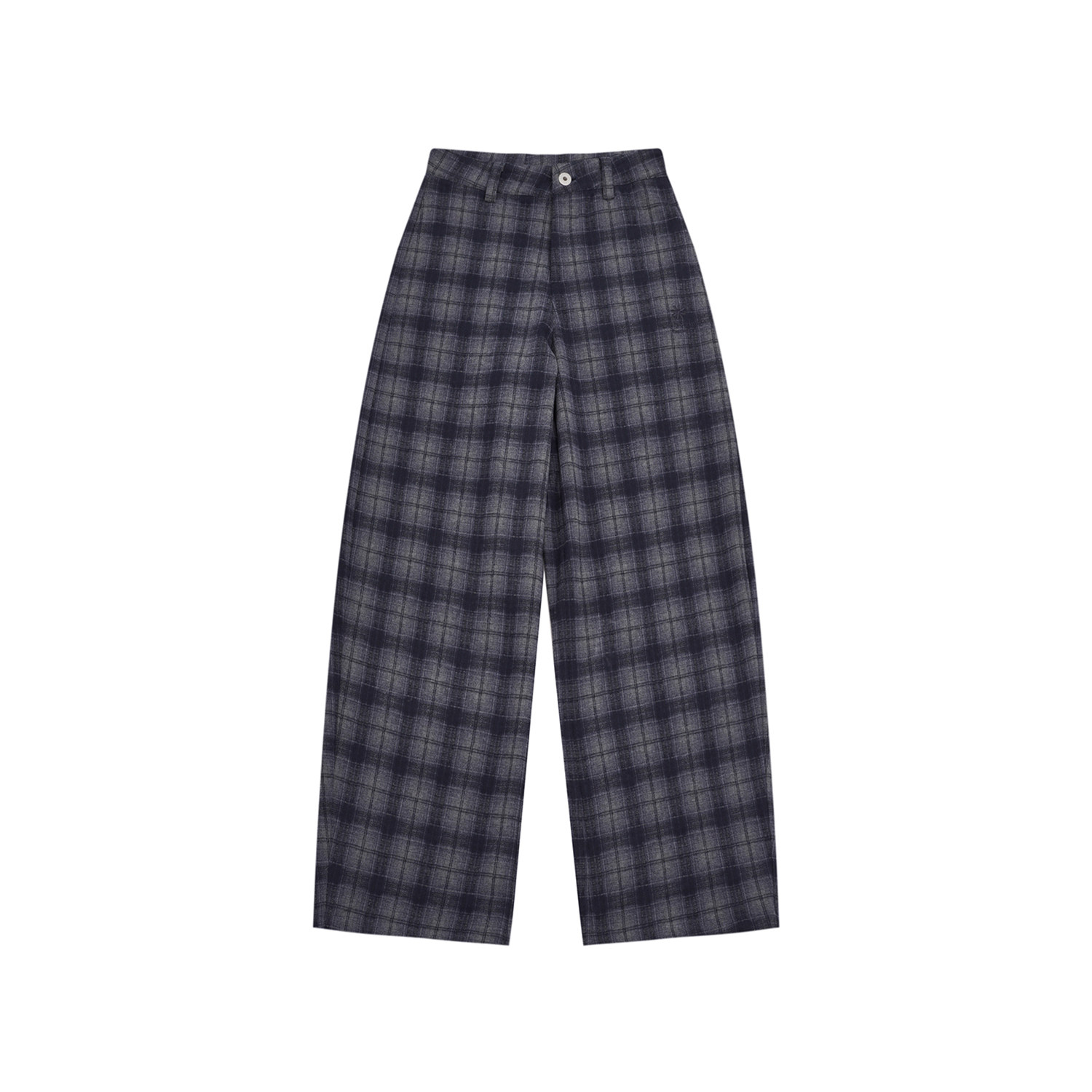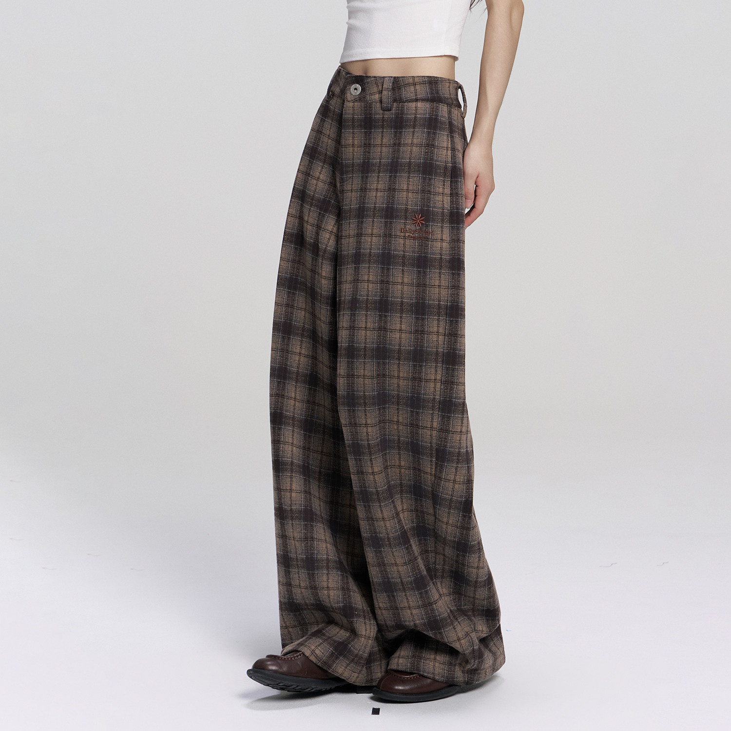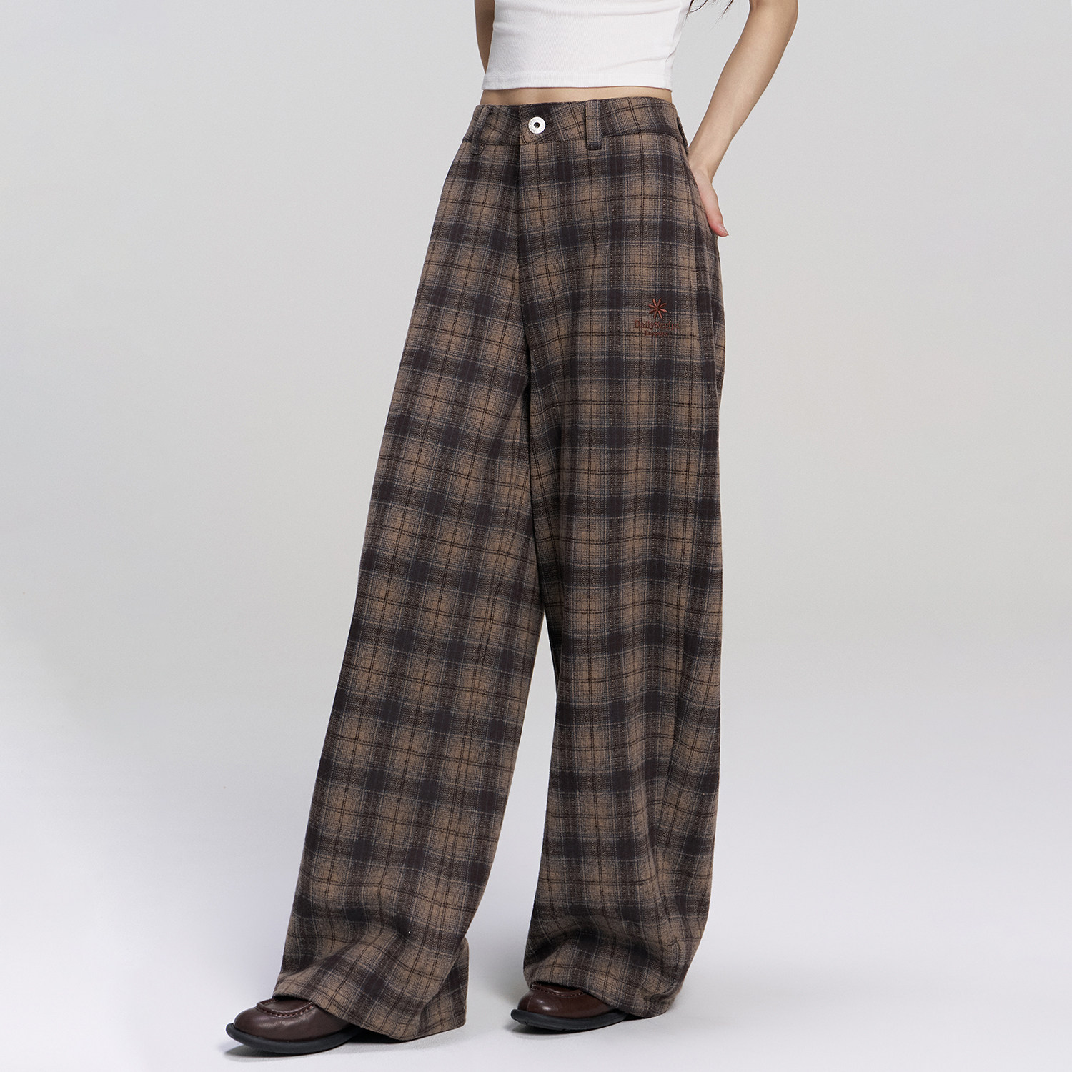 RAPPEYE 复古格纹休闲裤宽松显瘦直筒拖地阔腿毛呢格子裤女秋冬潮