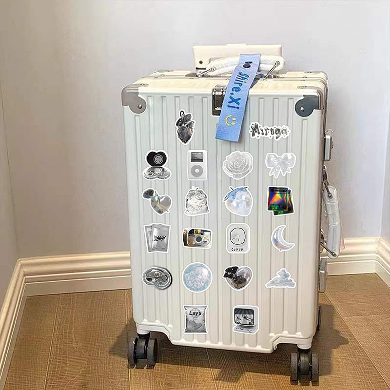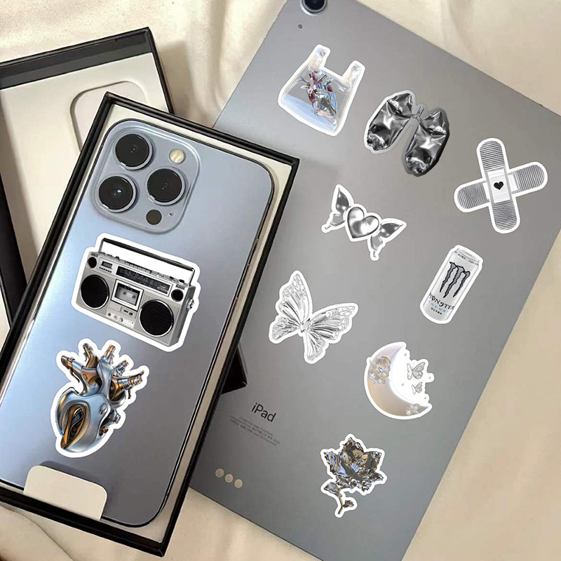 63.金属银色ins风贴纸复古美式个性创意防水贴画头盔旅行李箱帖子电脑ipad手机壳桌面保温水杯子壶迷你小贴纸