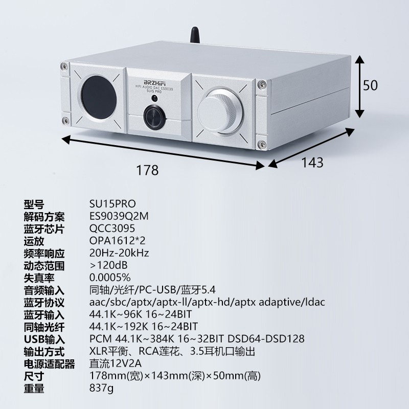 BRZHIFI伟良音响SU15PRO平衡音频dac解码器发烧ES9039Q2M蓝牙5.4