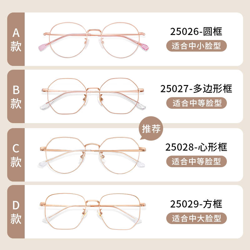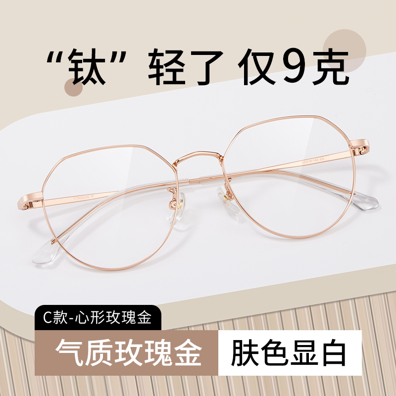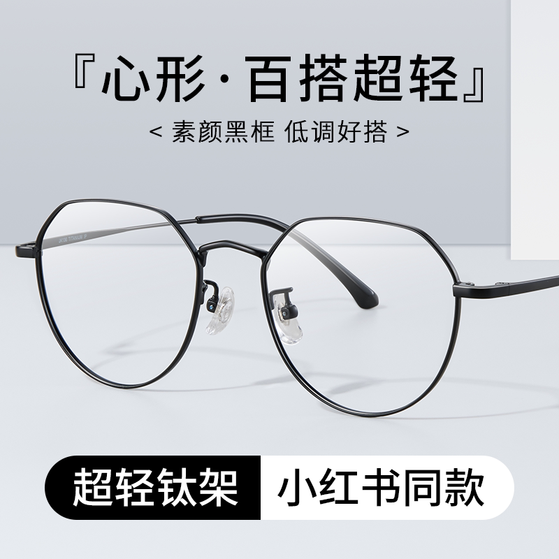 蔡司镜片配超轻近视眼镜框女可配度数纯钛防蓝光多边形女款镜架J