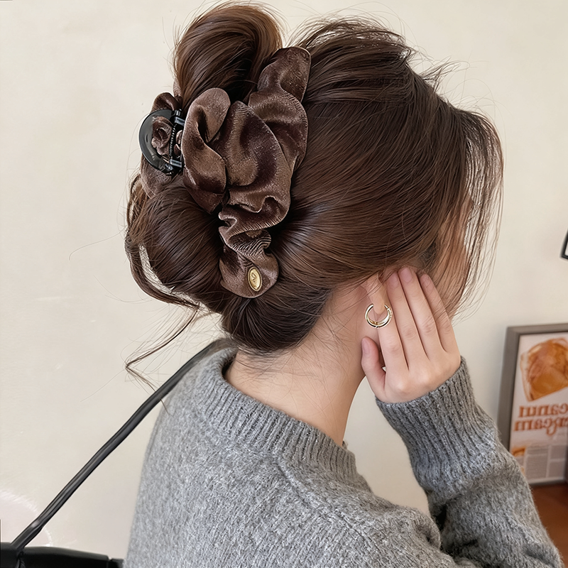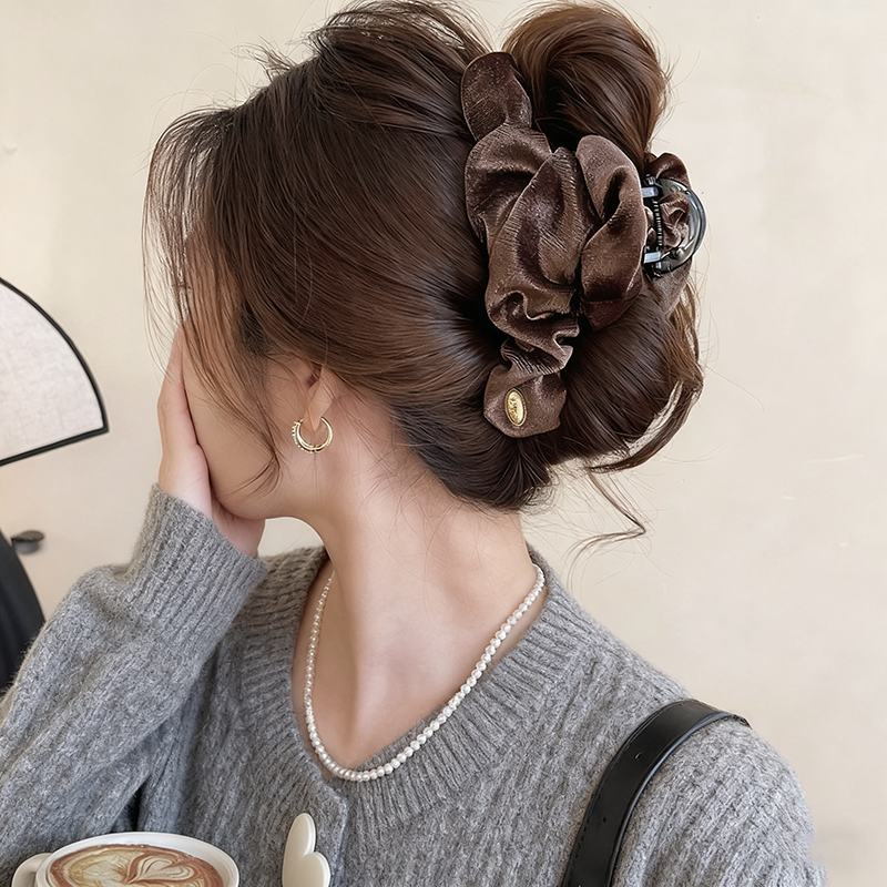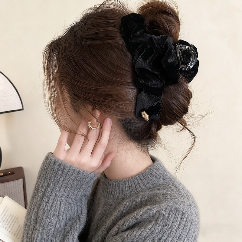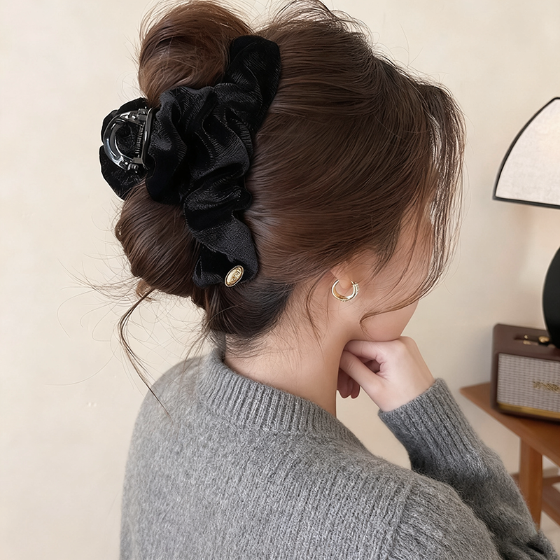 高定亮丝褶皱抓夹女高级感2025新款气质发夹饱满后脑勺盘发鲨鱼夹