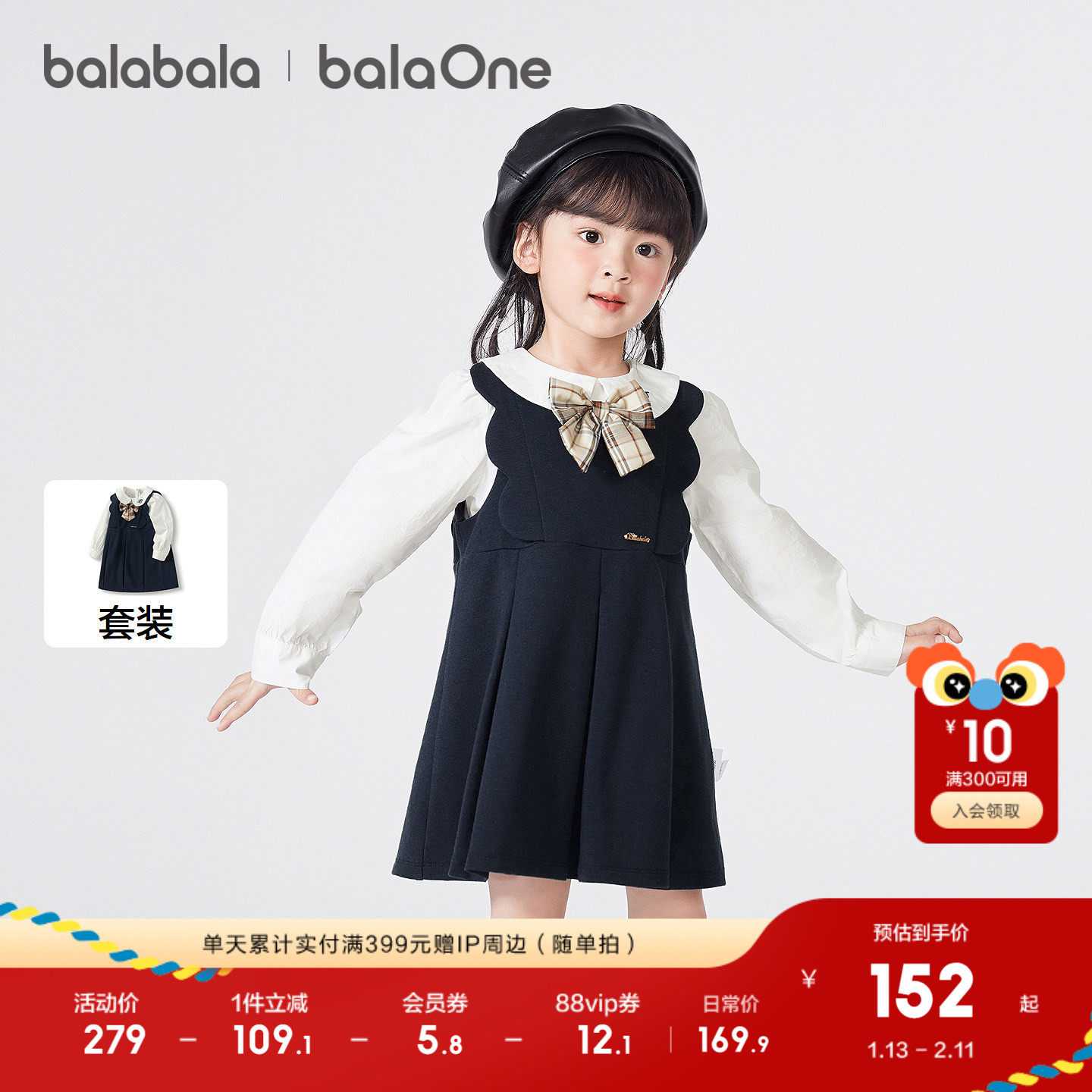 巴拉巴拉童装女童连衣裙套装学院风背带裙两件套2025新款秋装洋气