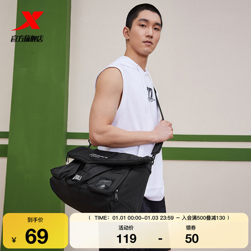特步情侣斜挎包2025年秋冬库娜大容量健身运动腰包女通勤单肩包男