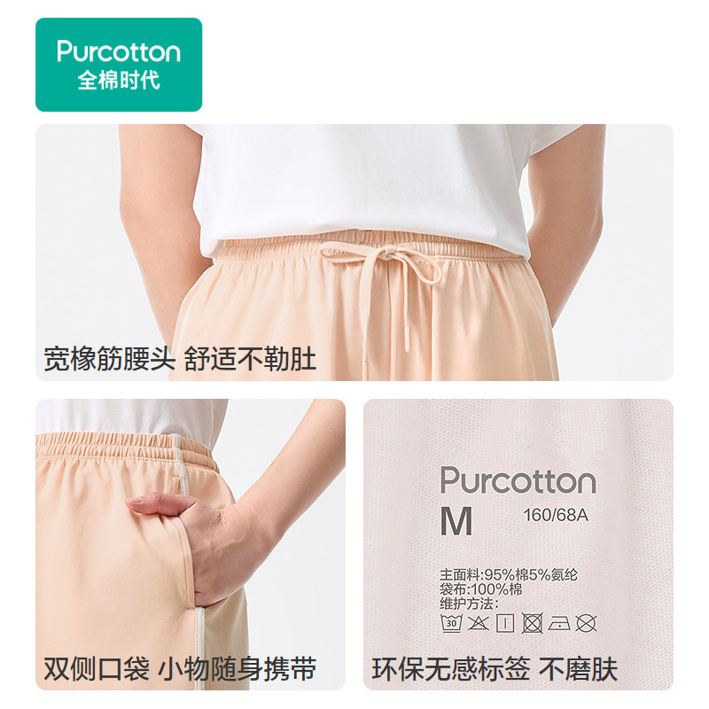 全棉时代女士凉感水光棉家居短裤纯棉睡裤瑜伽休闲裤可外穿舒适夏