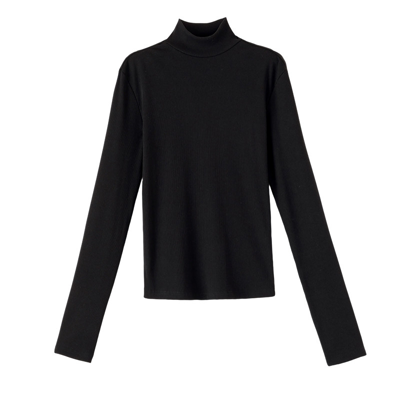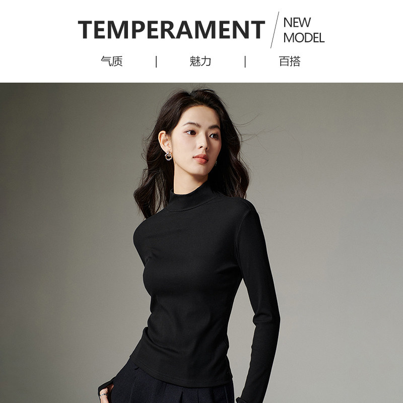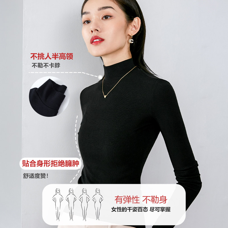 晚白2025年秋冬新款含棉半高领上衣纯色休闲百搭修身亲肤打底衫女
