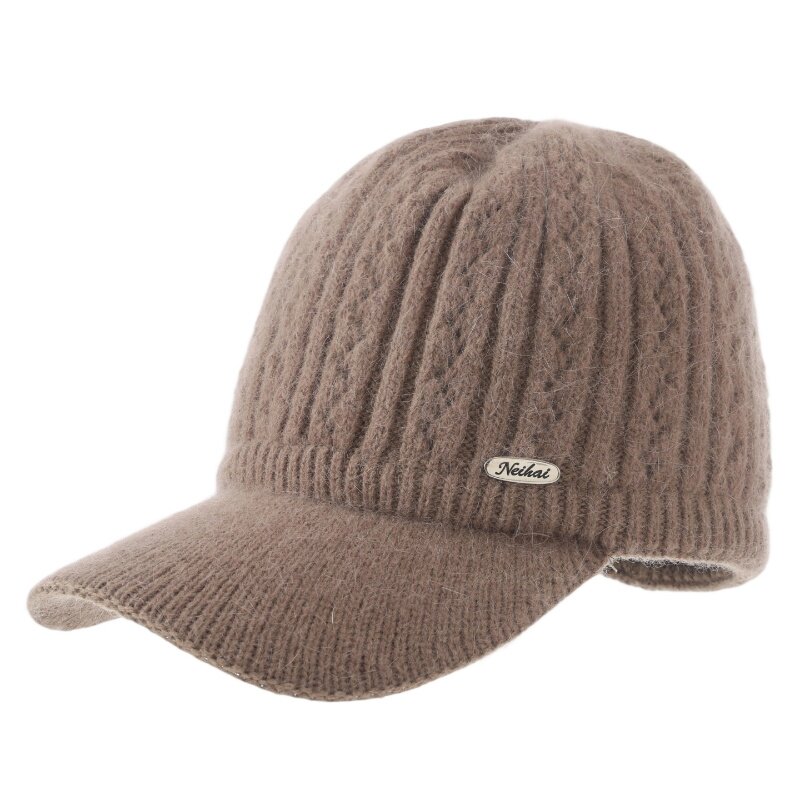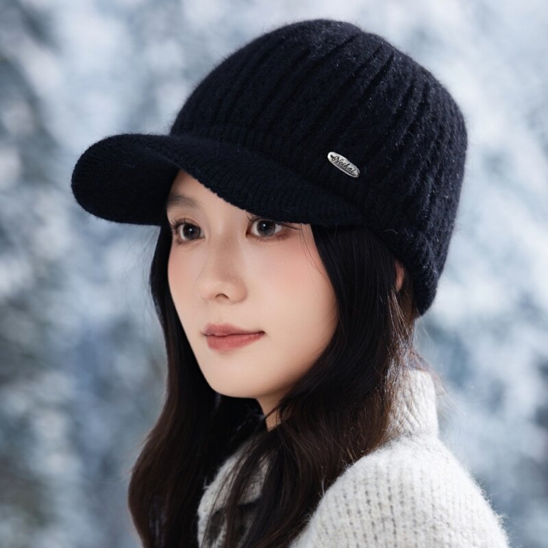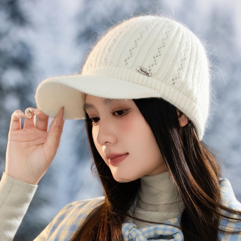 秋冬帽子新款加绒加厚保暖冬季韩版女防寒护耳针织毛线鸭舌帽白色