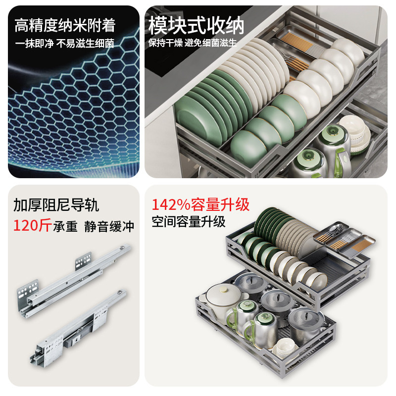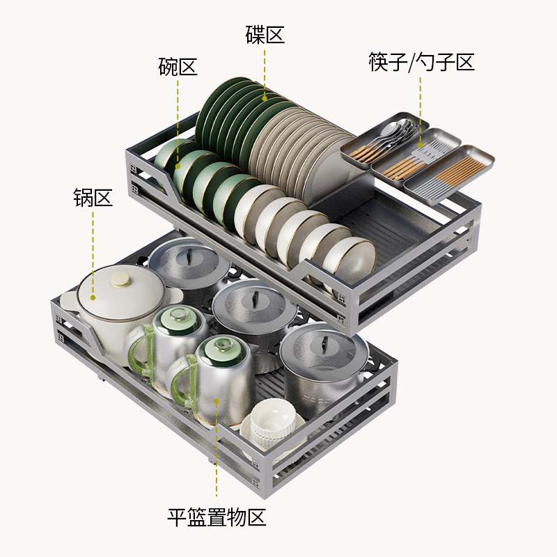 拉篮厨房橱柜304不锈钢抽屉式碗架收纳碟架碗篮蓝置物架碗碟柜体