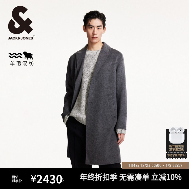 杰克琼斯冬季新款时尚潮百搭平驳领长款外套通勤日常毛呢大衣男装