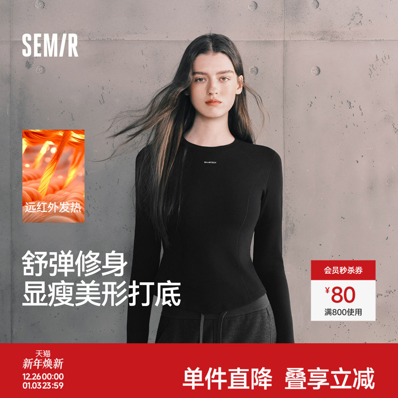 轻户外|商场同款|森马长袖T恤女冬分割发热抓毛修身2025新款上衣