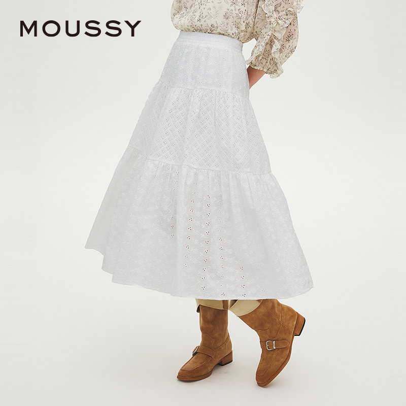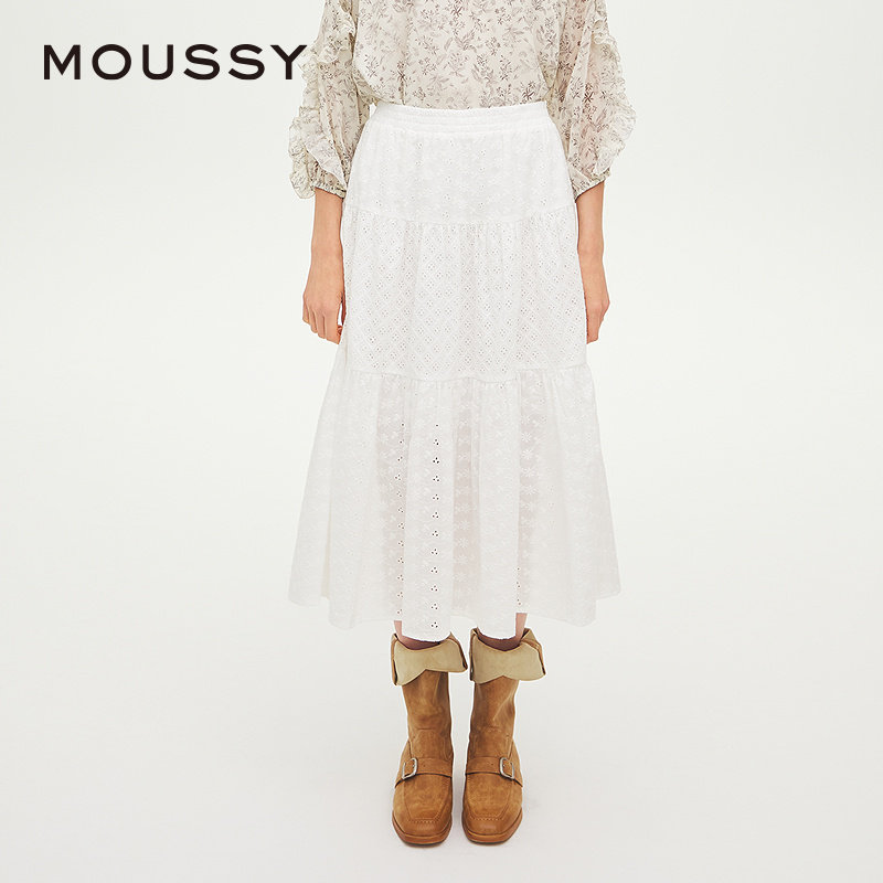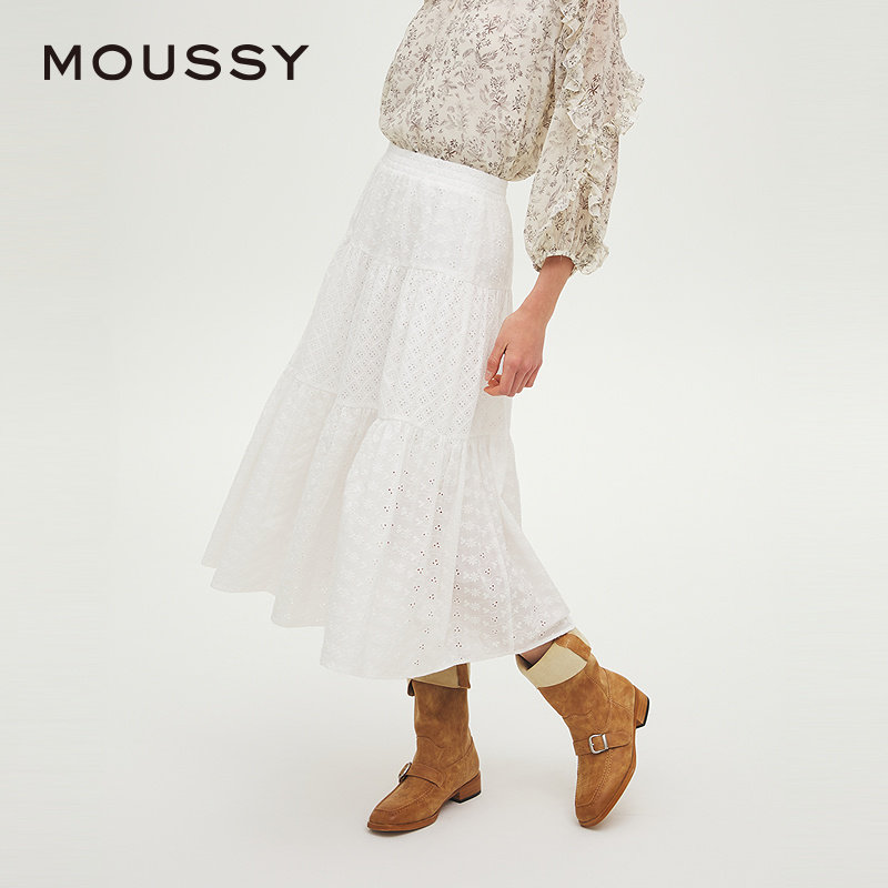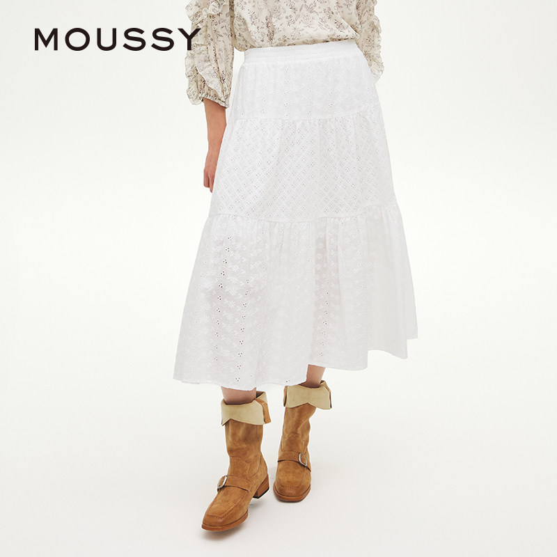 moussy 春季波西米亚度假风大摆白色半身裙028ISX31-3231