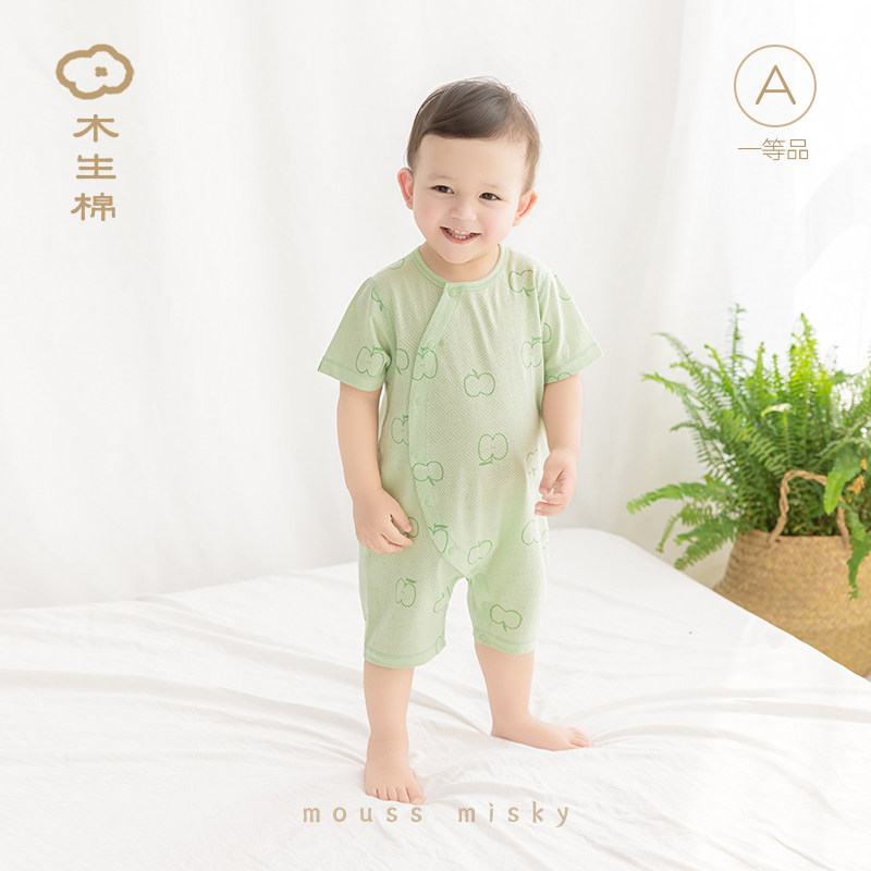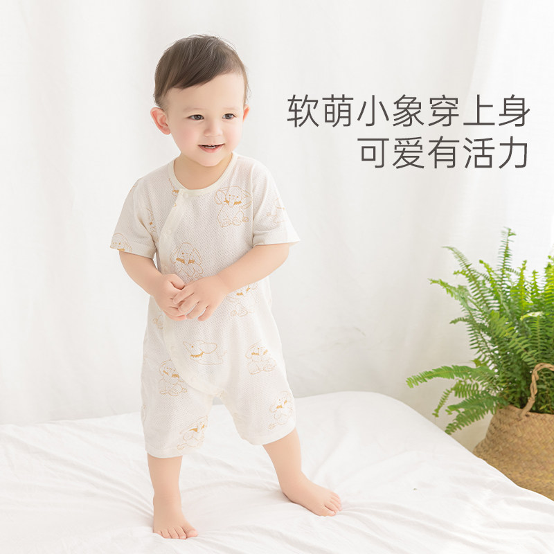 木生棉婴儿短袖连体衣夏季薄款男女宝宝透气哈衣无骨居家爬服夏装