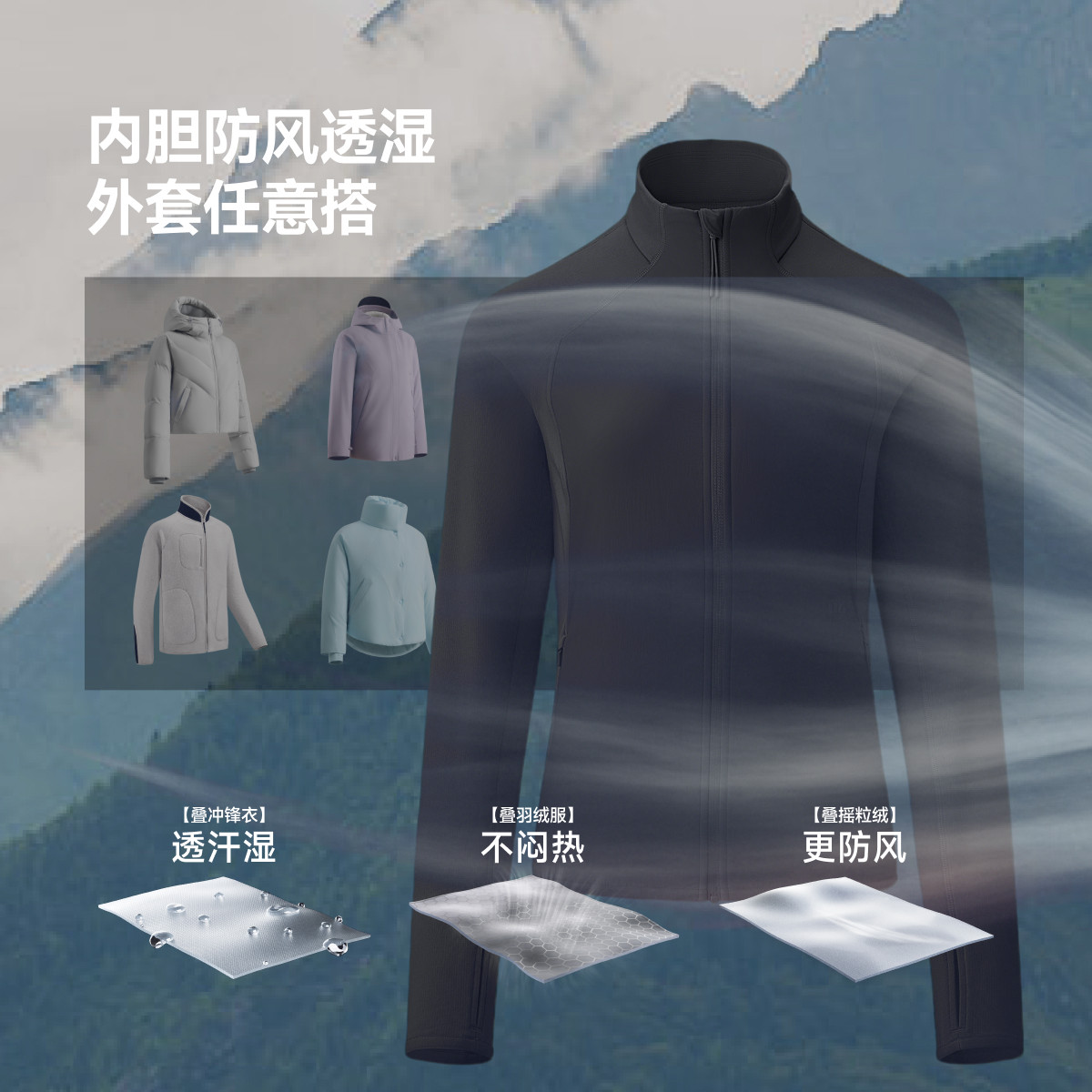 蕉下抓绒衣女款秋新款修身户外防风加绒徒步外套摇粒绒冲锋衣内胆