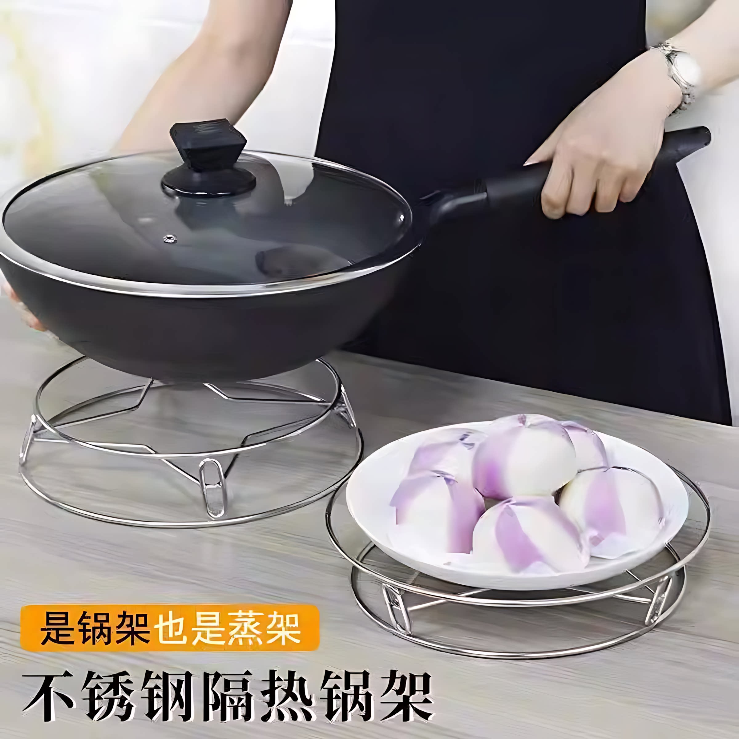 不锈钢锅架家用厨房置物架多功能架子加厚隔热支架防烫收纳蒸架