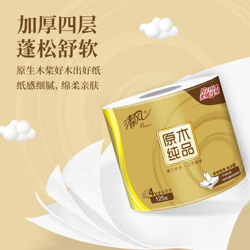 【清风热销】原木金装有芯卷纸125克卫生纸卷筒纸厕纸加厚卫生纸