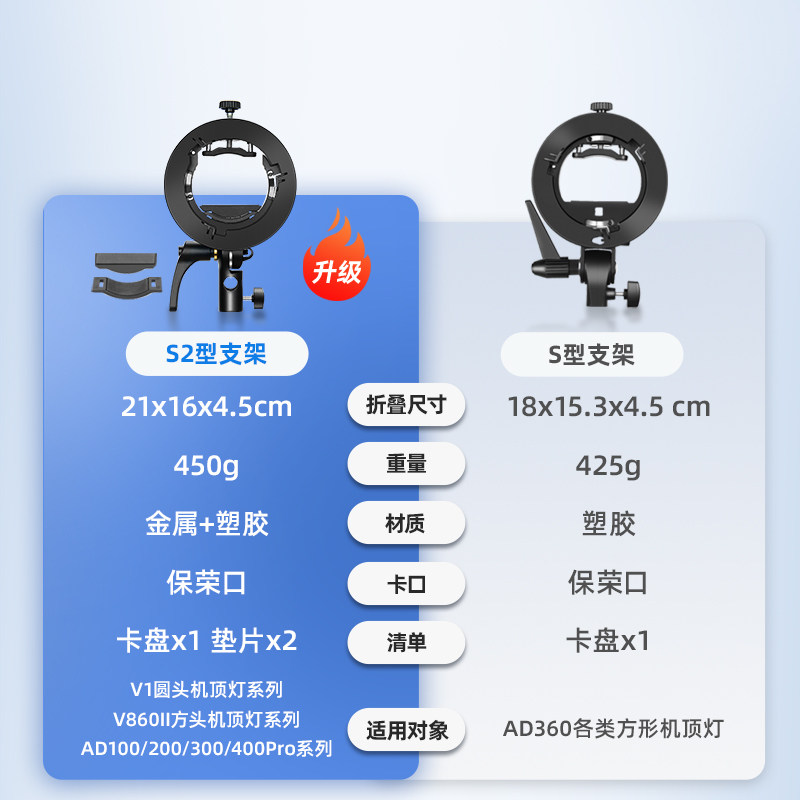 【神牛原装】神牛S2闪光灯卡盘机顶灯保荣卡口热靴灯V1/V860III/AD200pro反光/柔光伞柔光罩转接附件转接附件