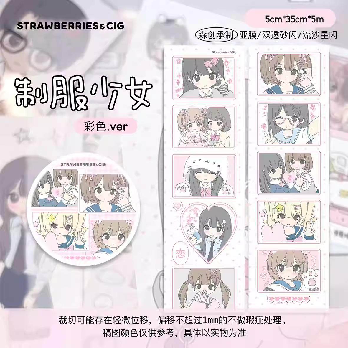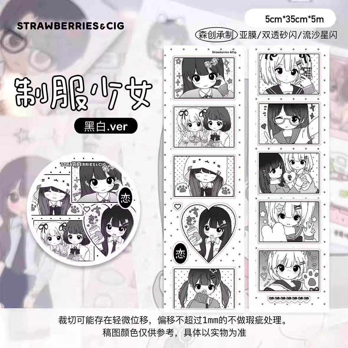 草莓烟 制服少女 循环分装切模人物胶带贴纸卷漫画手帐装饰新品