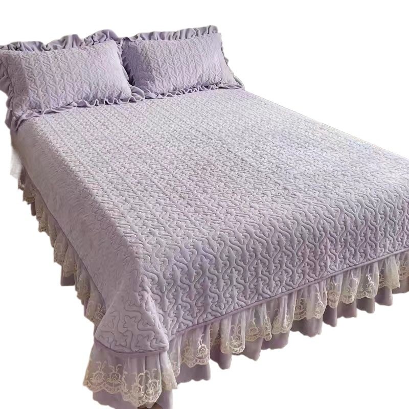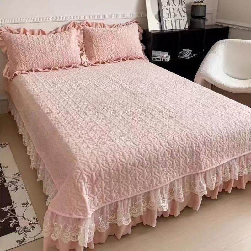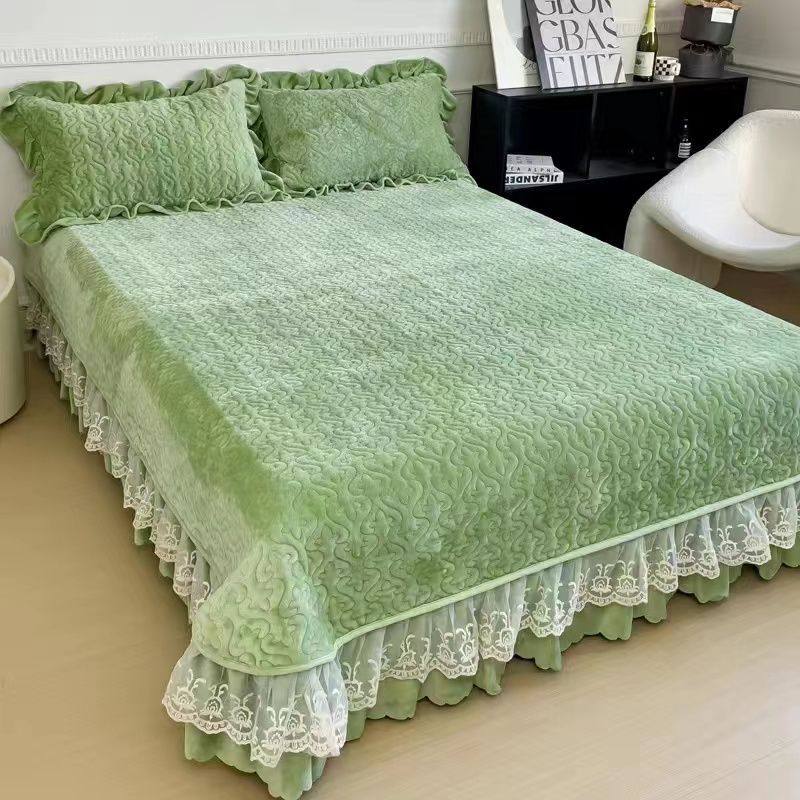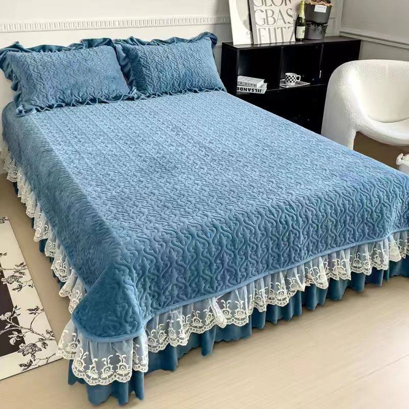 牛奶绒蕾丝花边床盖冬季床裙加绒三件套四件套冬季床盖速卖通