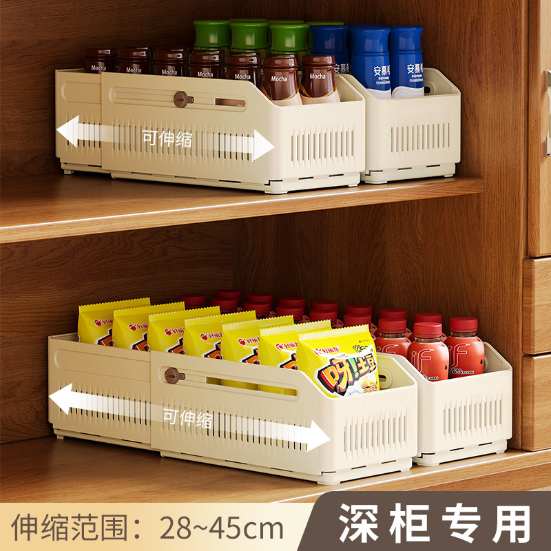 可伸缩橱柜收纳盒抽屉式桌面零食杂物厨房整理盒深柜直角储物盒子