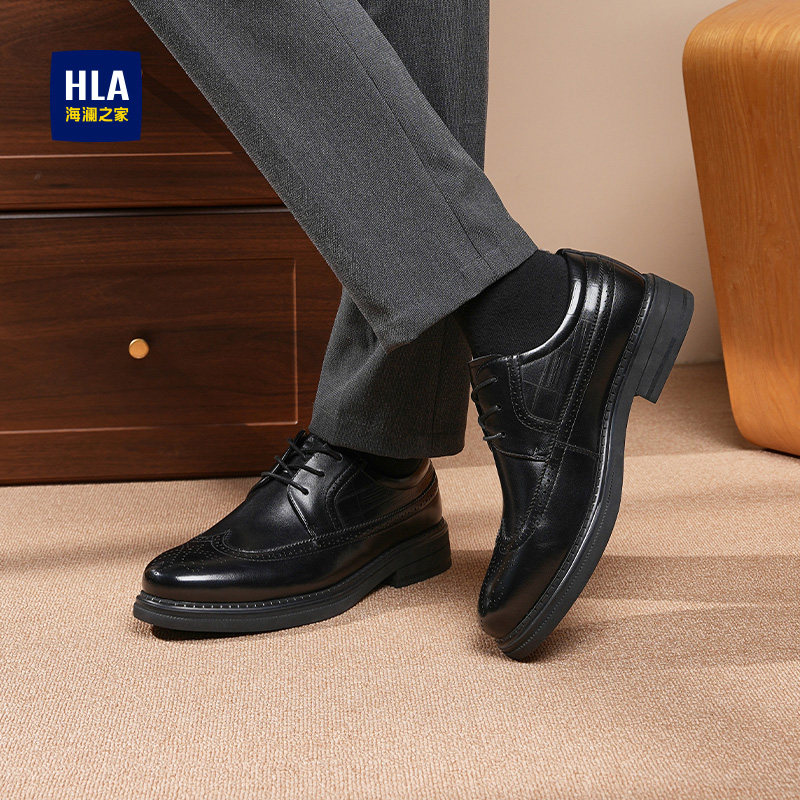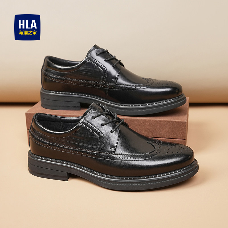 HLA/海澜之家男鞋新款春秋真皮结婚新郎时尚布洛克皮鞋男商务耐磨
