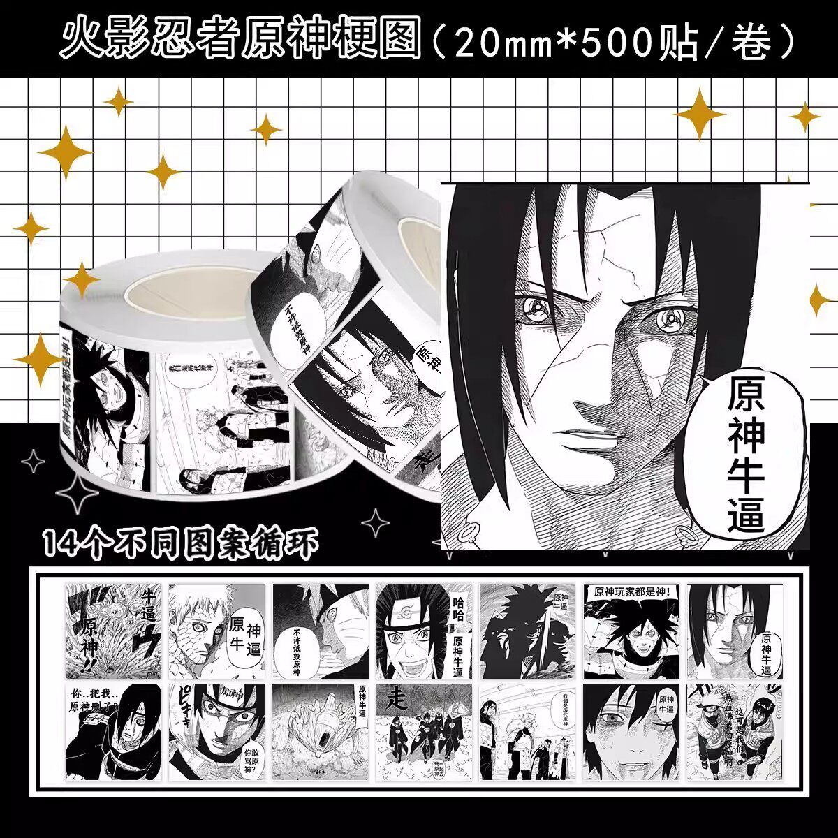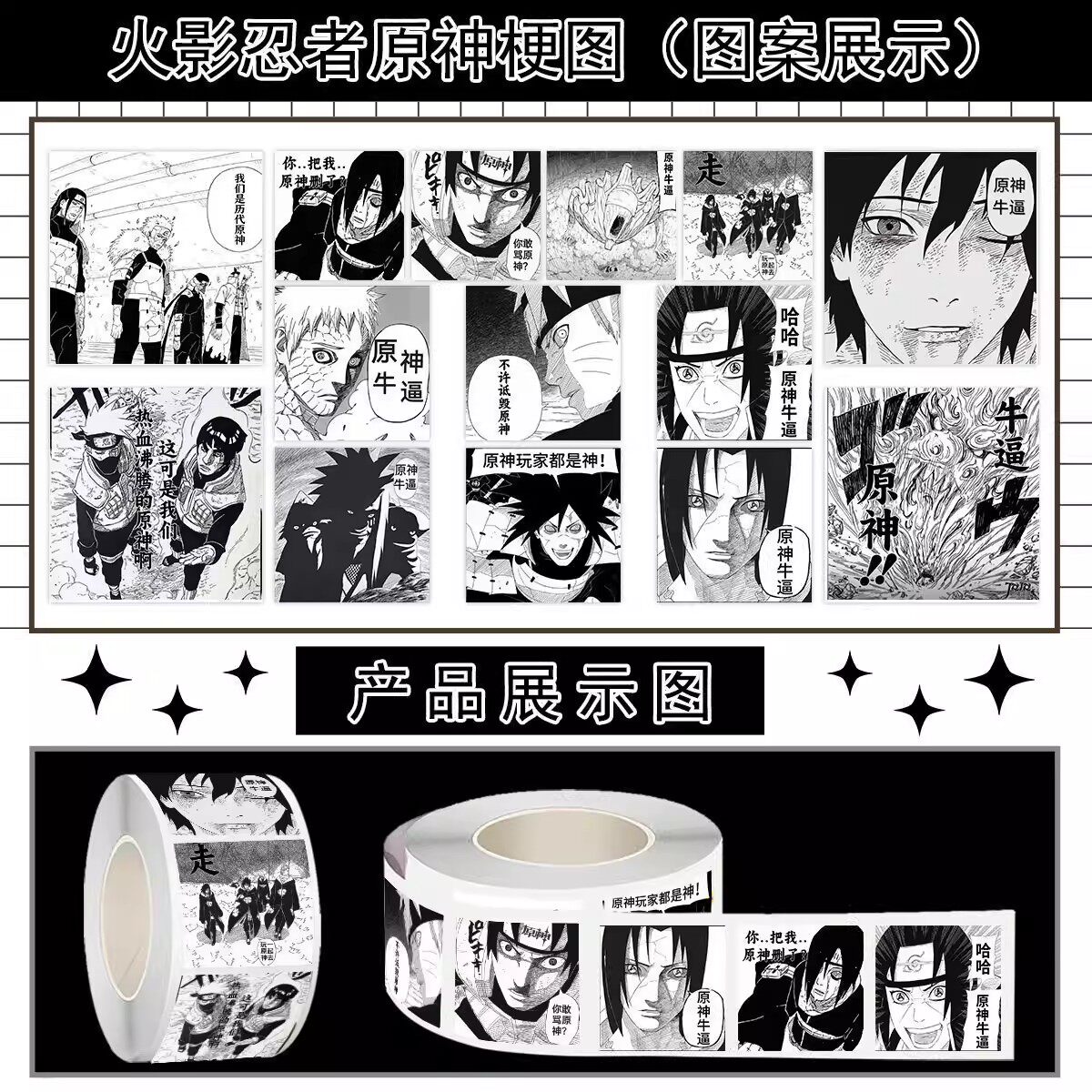 1000贴火影忍者原神卷卷贴黑白牛逼梗图游戏周边装饰水杯防水贴画