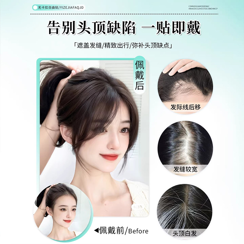 刘海假发女片头顶无需发卡自然前额蓬松仿真发增发量假刘海补发片