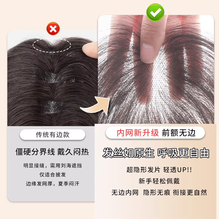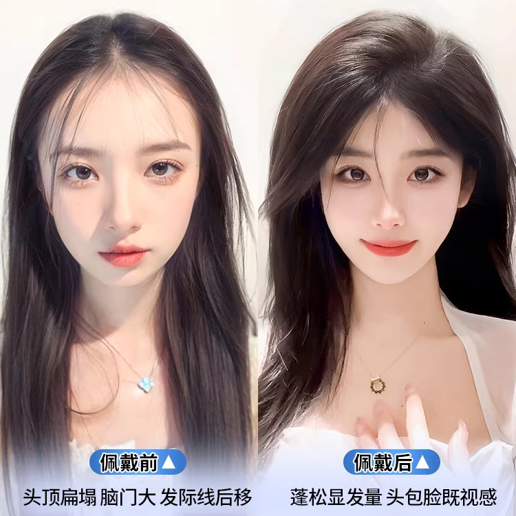 期桃真人发刘海片女假发片隐形无痕自然前额高颅顶遮白发