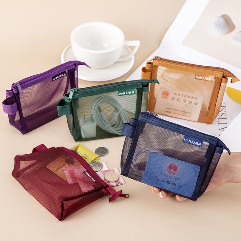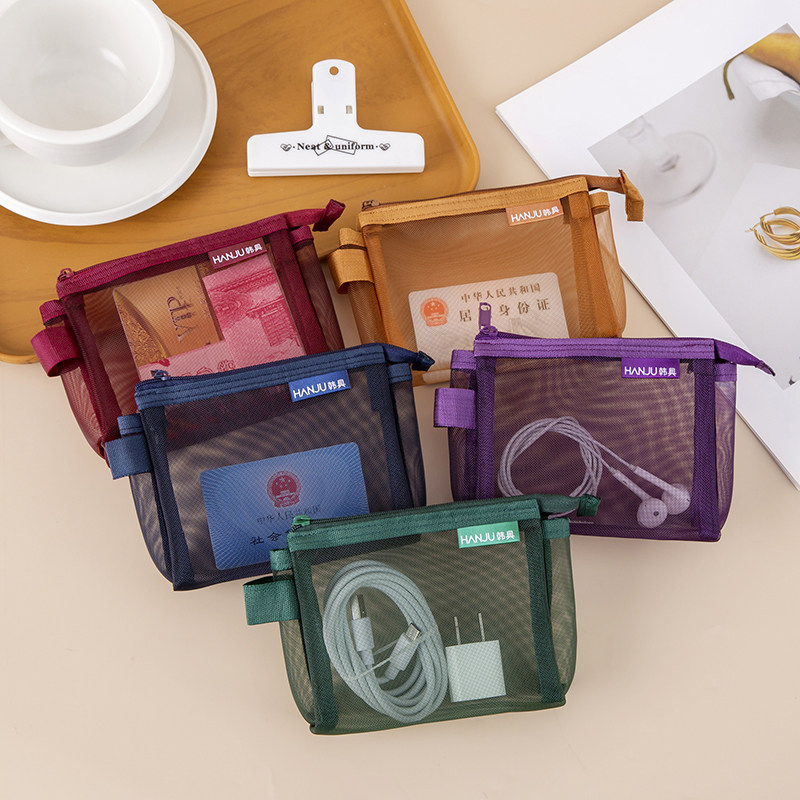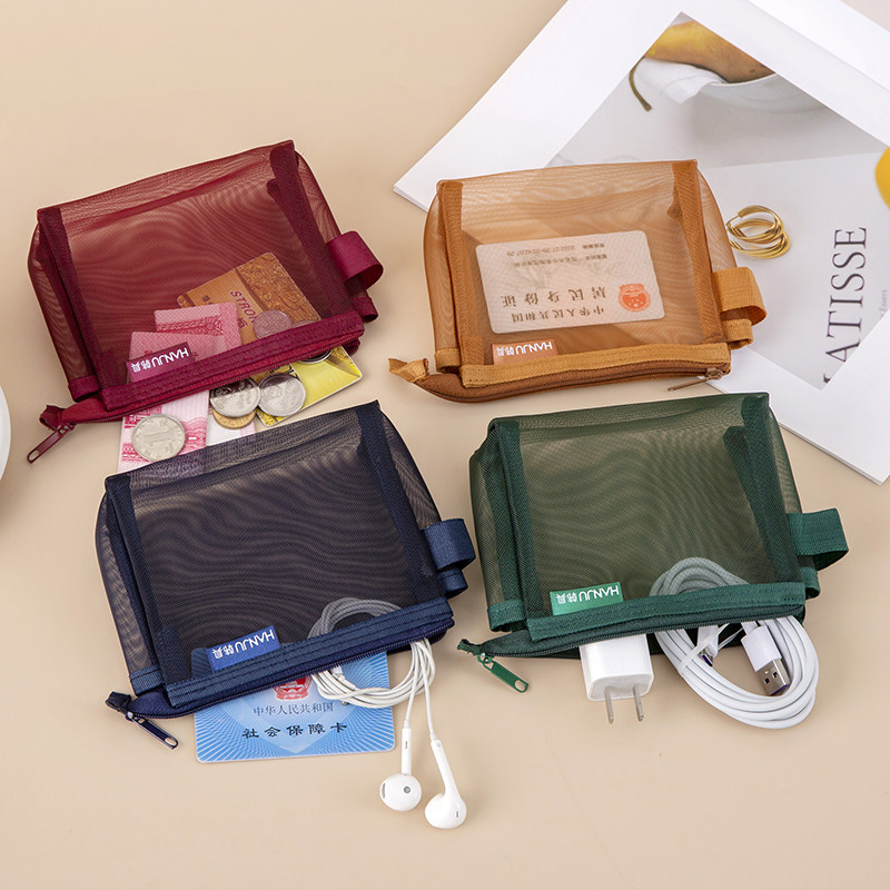 复古色三角立体透明尼龙网纱拉链包拉链袋迷你零钱袋卡片袋银行卡收纳袋硬币小卡片收纳袋文件袋公交银行卡袋